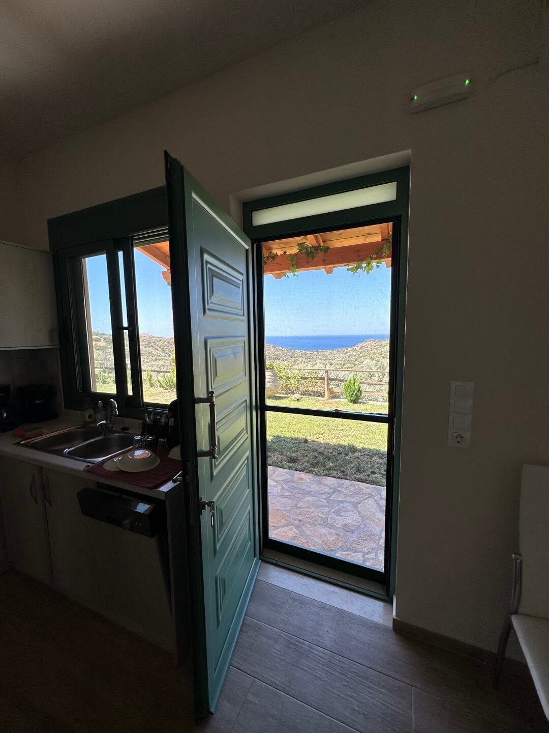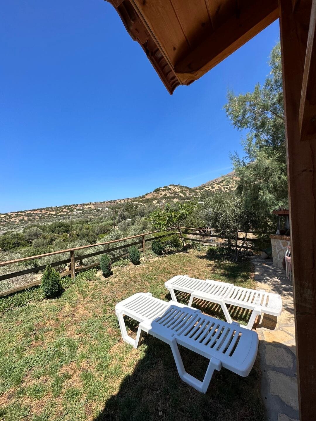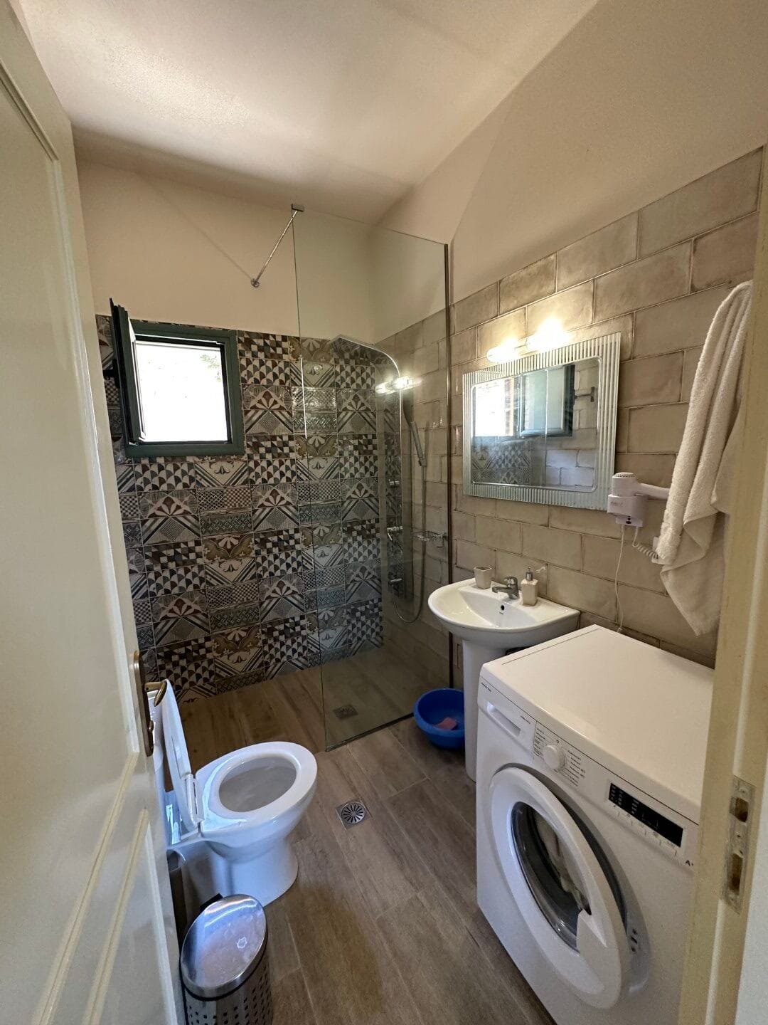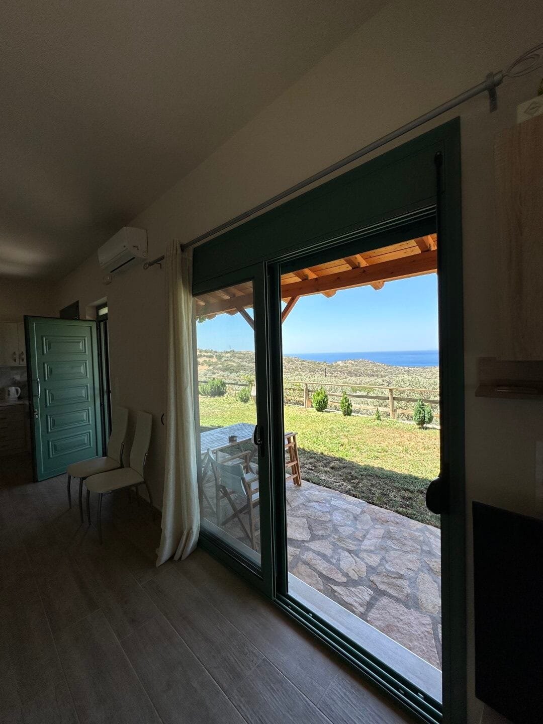 A house with a total surface area of 75 square meters is available for monthly rent in the Triopetra area. The house features a spacious open-plan living room and kitchen with a dining area that is fully furnished and equipped with electrical appliances. It comprises of two bedrooms with fitted wardrobes – one featuring a double bed and the other, two single beds – both equipped with large windows for natural light. The house also has a spacious bathroom with a shower and washing machine.