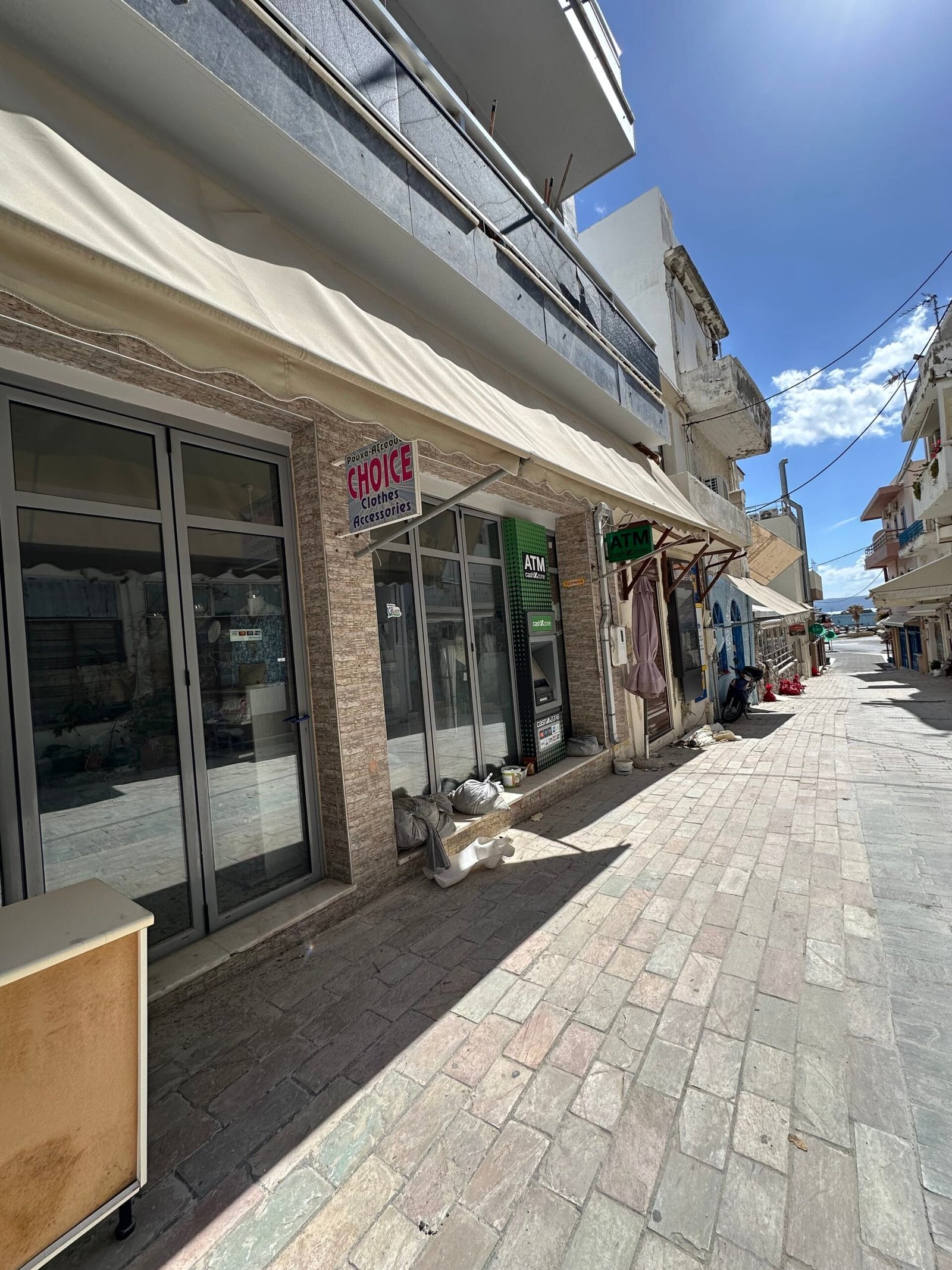 Available for purchase is a 170-square-meter space, ideal for professional use. The property is strategically situated in the heart of Agia Galini’s central market, a short two-minute walk from the port.