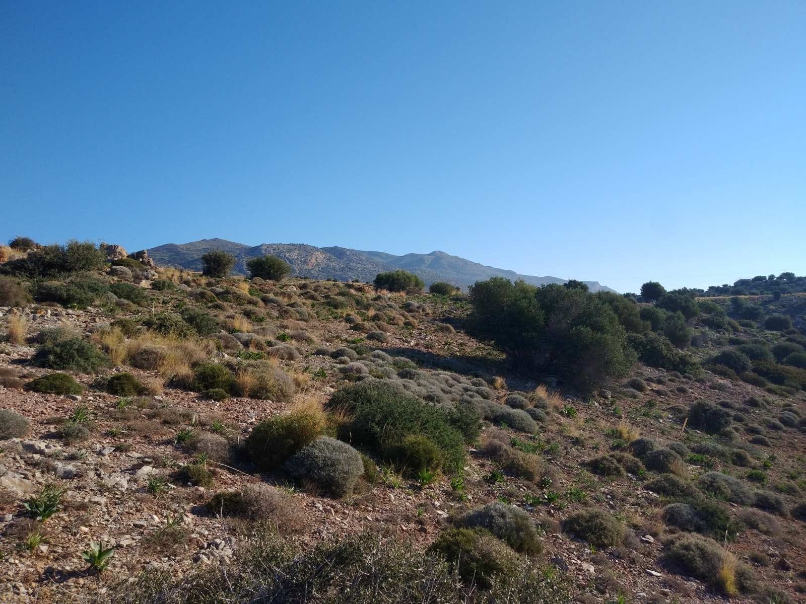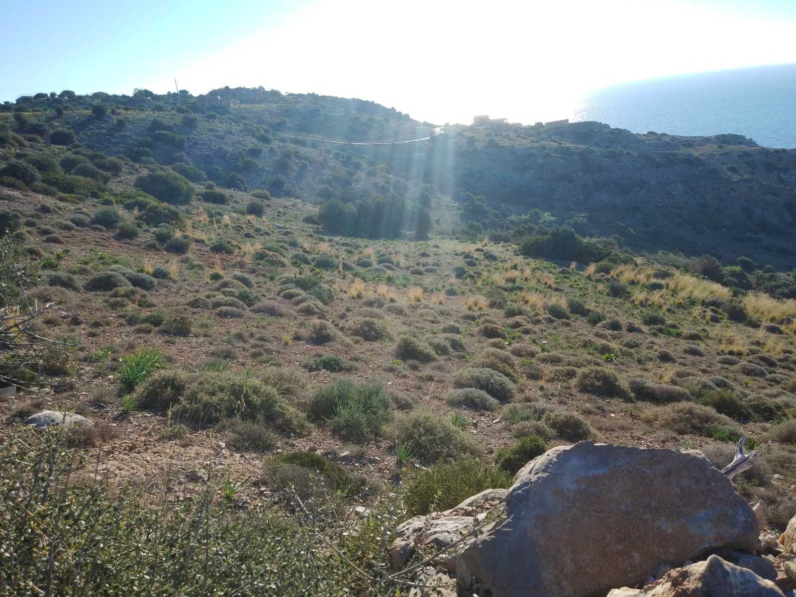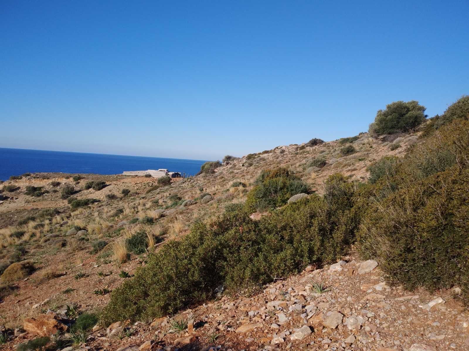 Huge plot of 11.600 sqm in the area of Agios Pavlos, very close to the beach in Prasonisi, with an amphitheatrical slope that allows it to have incredible views of the Cretan sea, the bay of Agios Pavlos and the islands of Paximadia. It has easy access from a small path where it starts from the main road to Agios Pavlos. Of the 11.600 sqm, 9.435 are exploitable, even and buildable , not occupying forest land.
