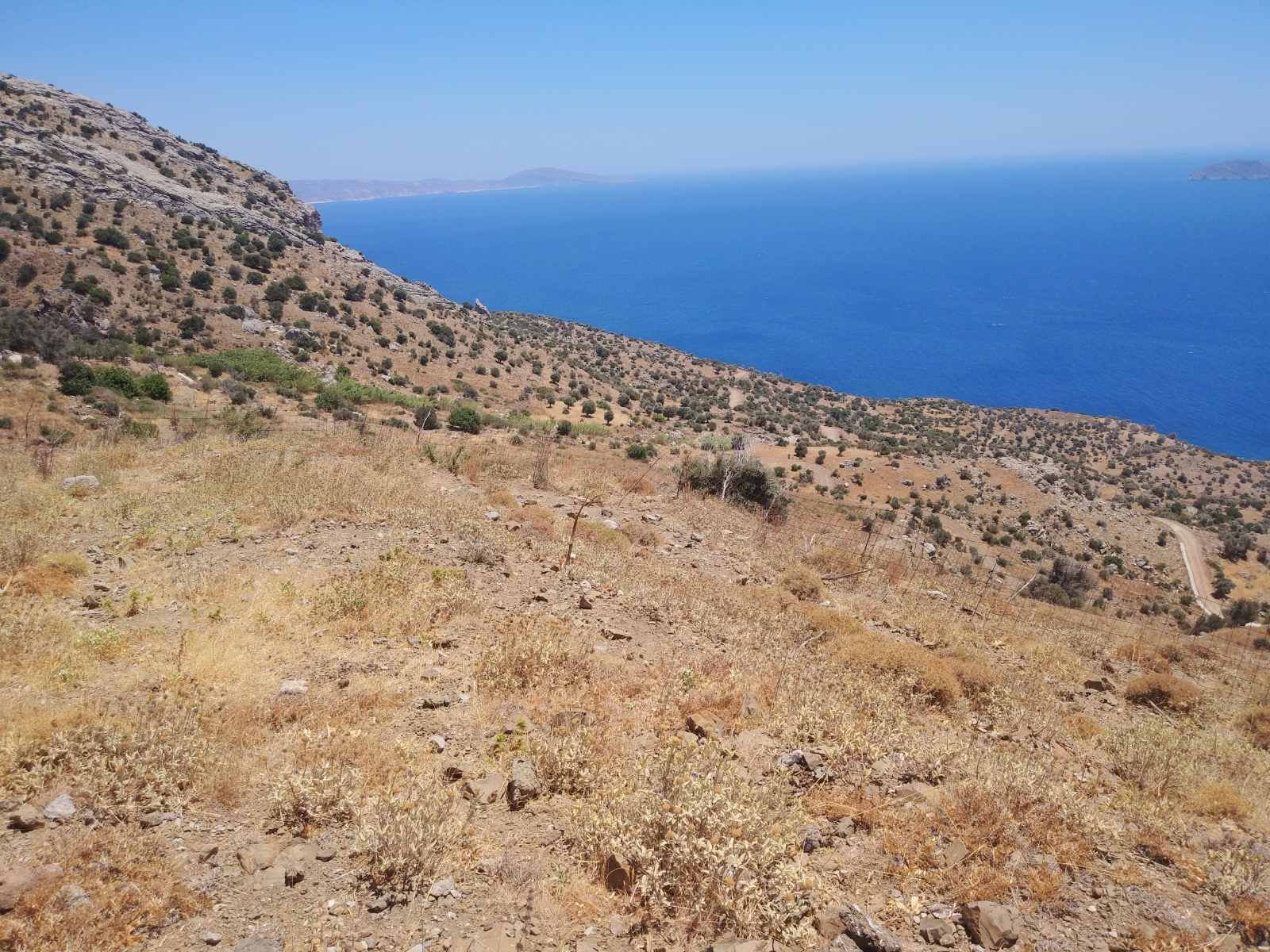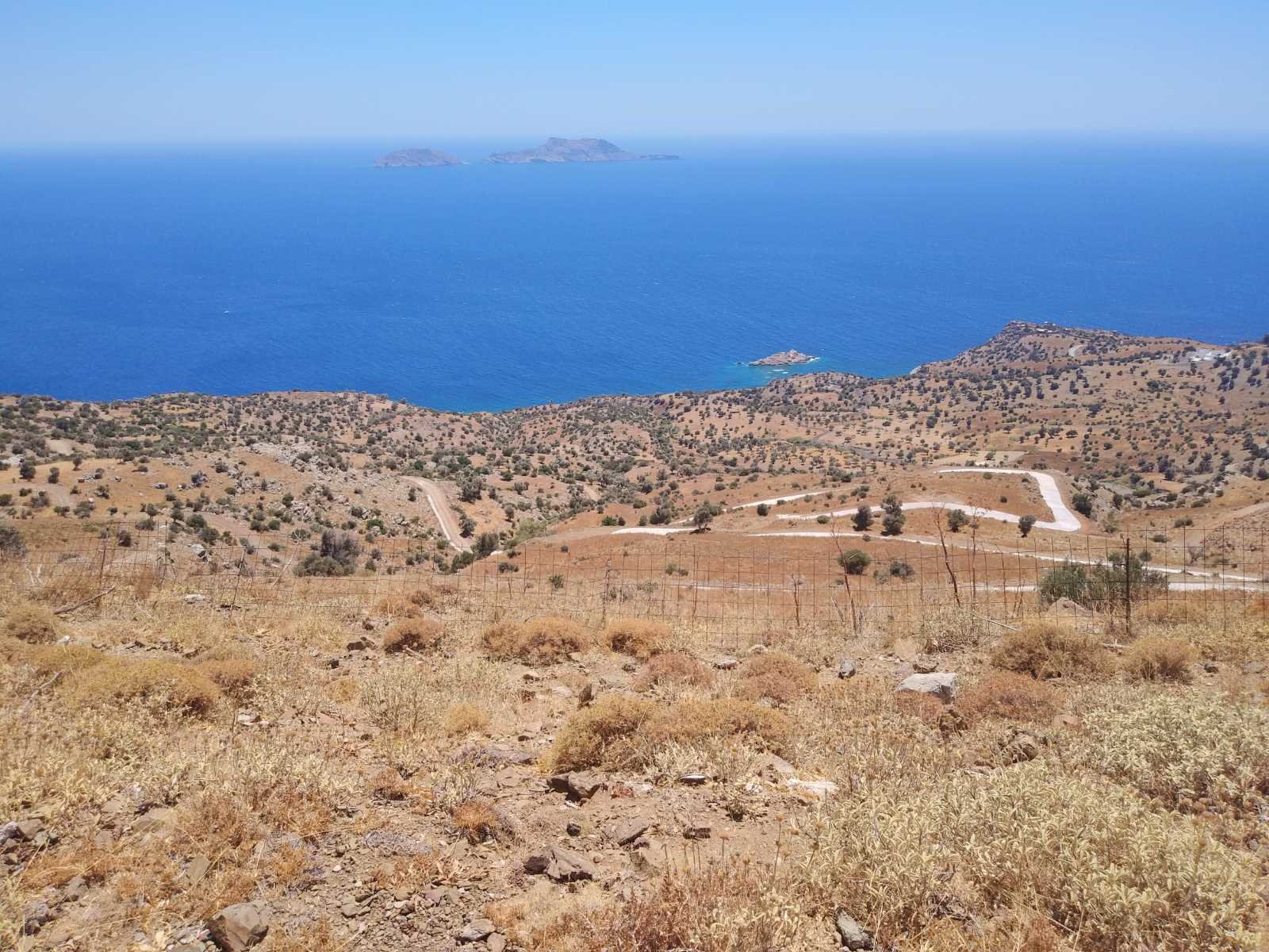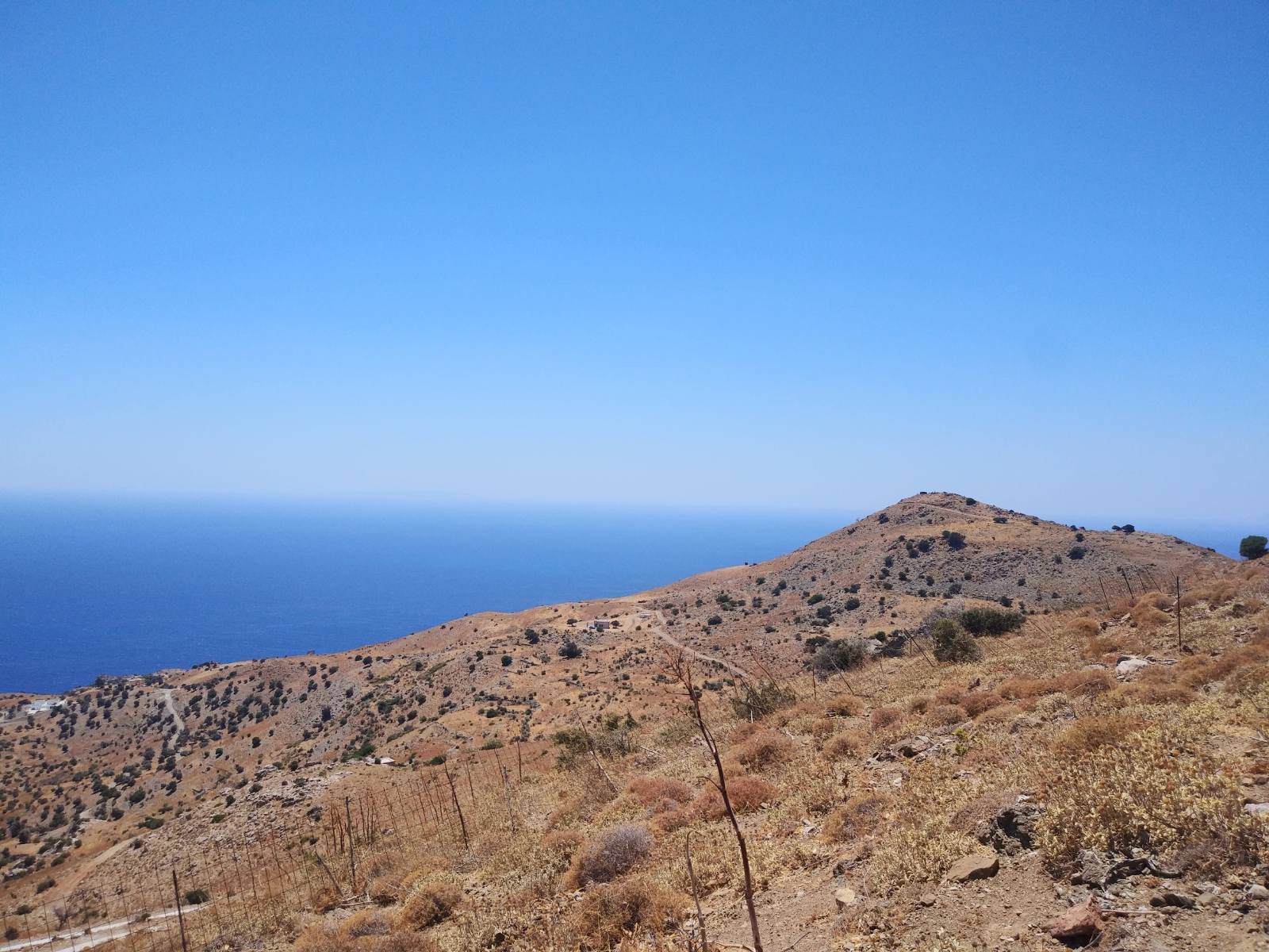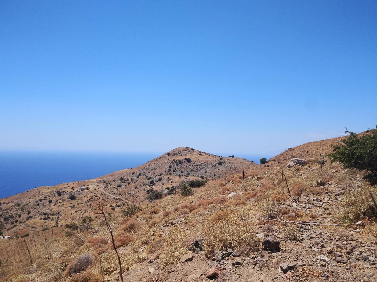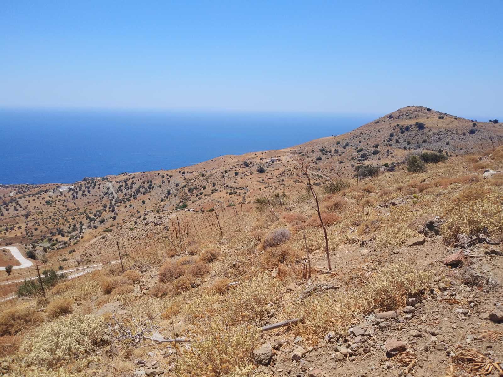 Plot for sale between the villages of Sahtouria – Agios Pavlos, on the new road and touching the main road. It is 8.580 sq.m. and has easy access for electricity connection. It is protected from the wind and has amazing views as it overlooks the islands of Paximadia and Prasonisi.