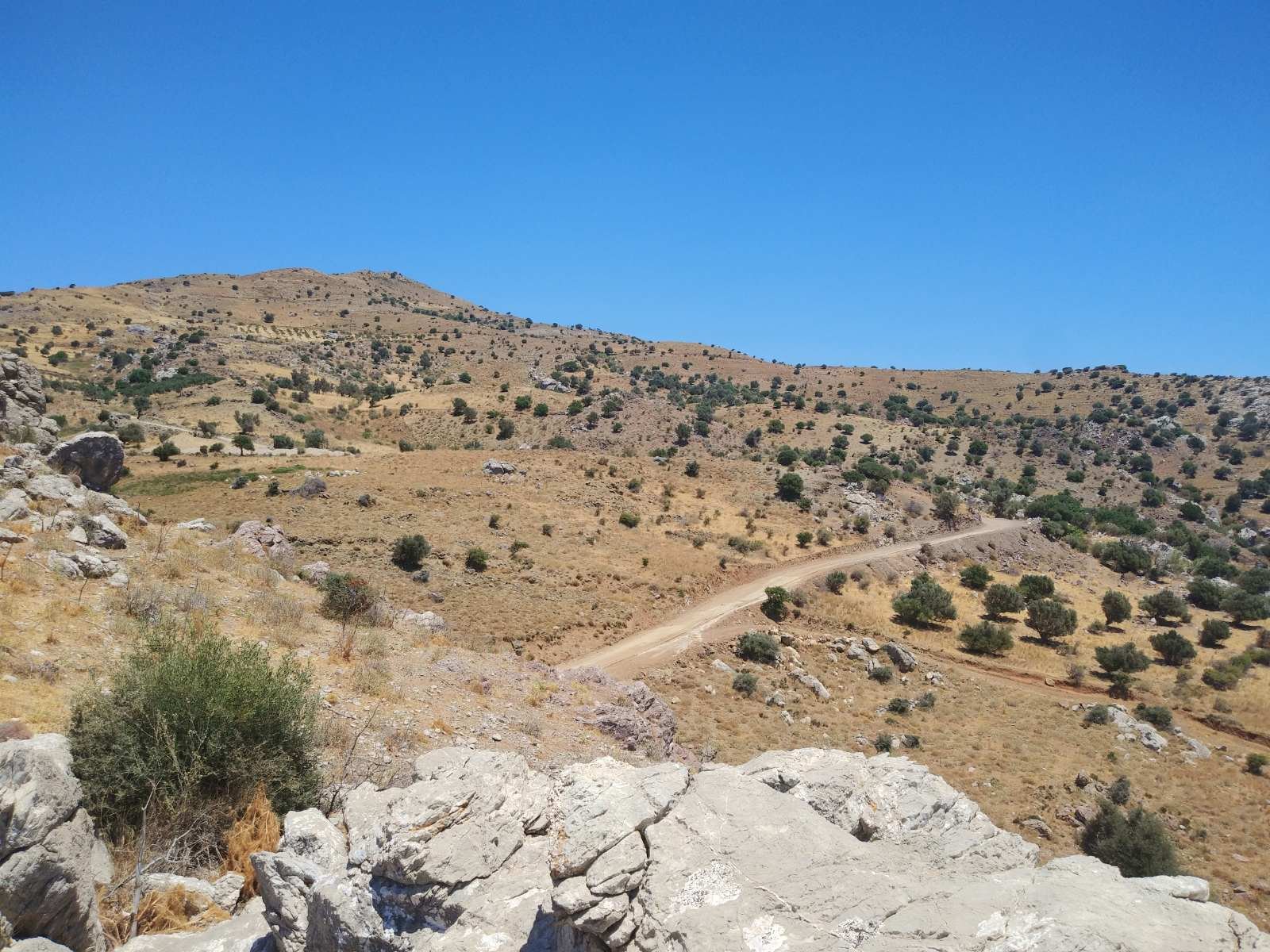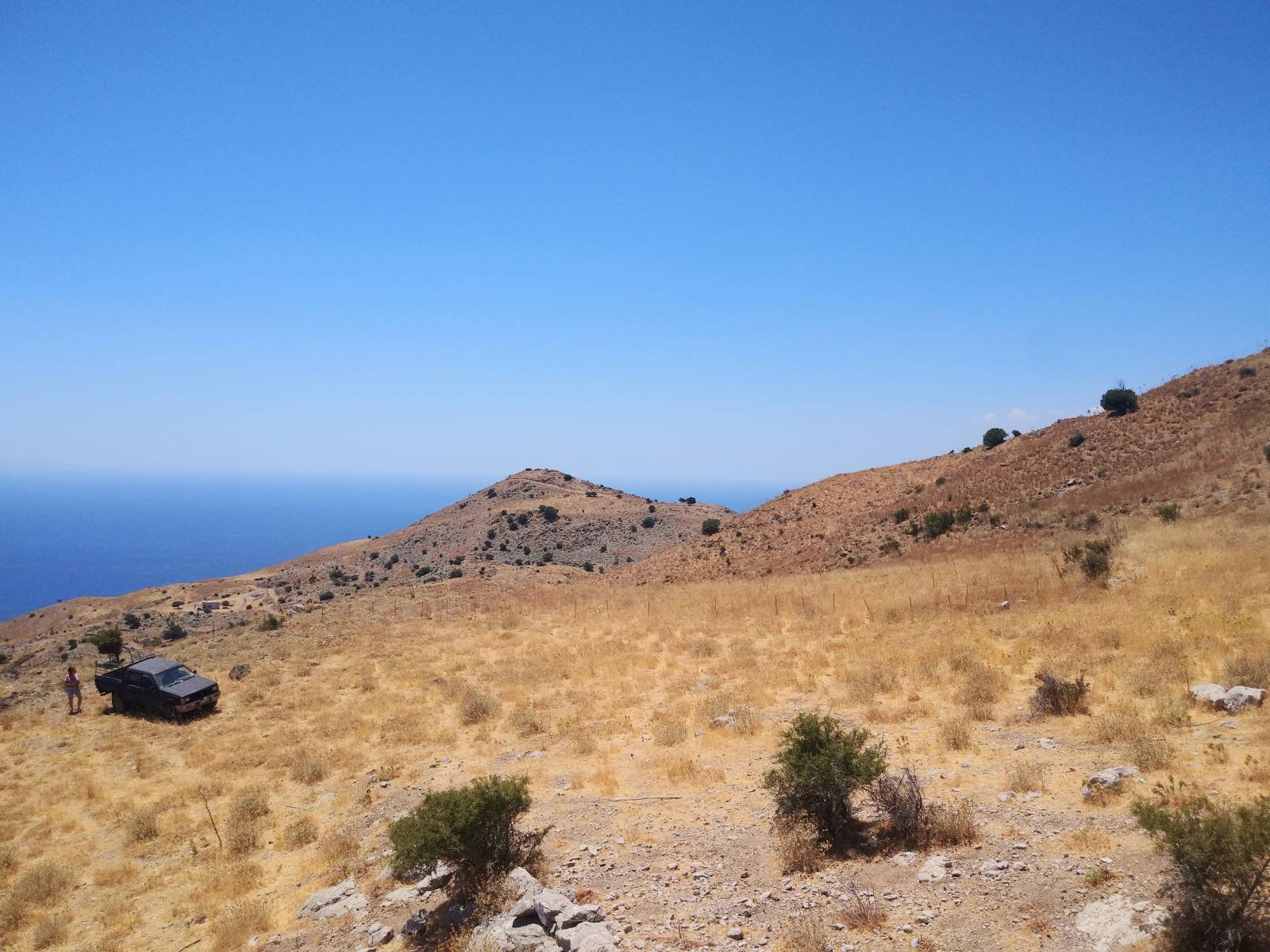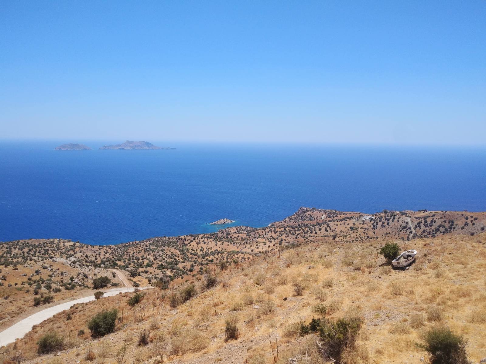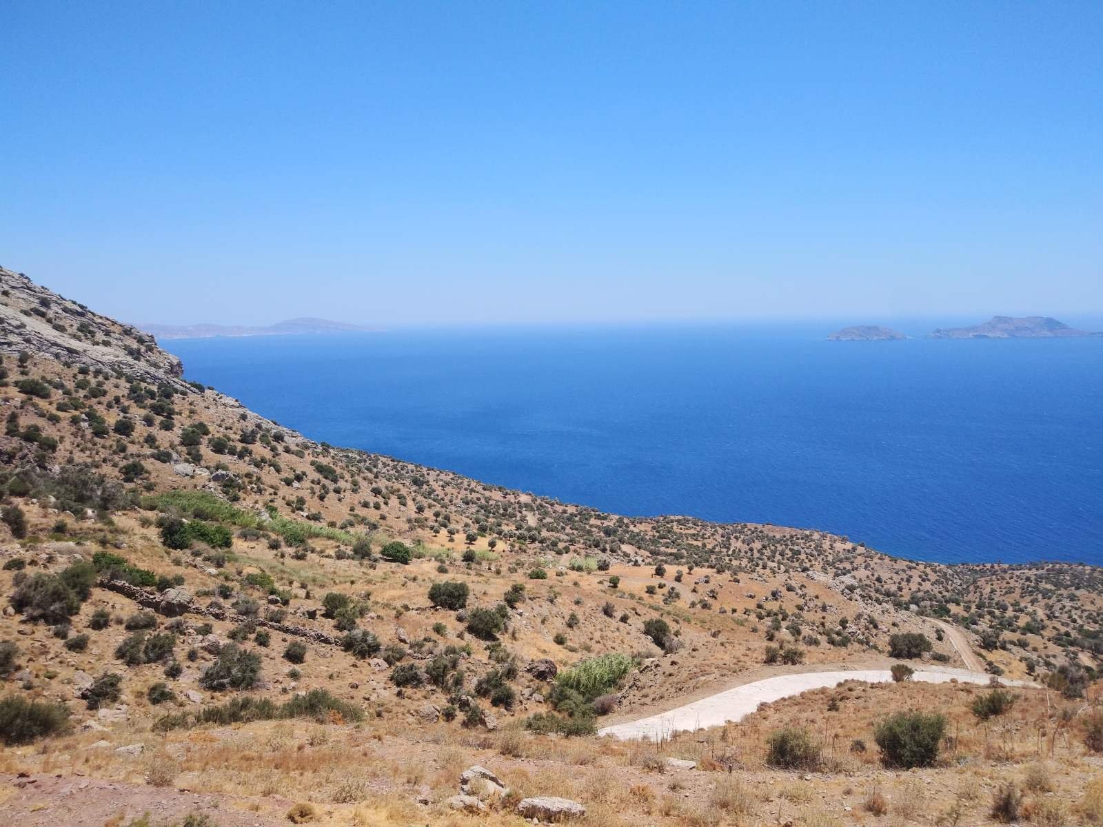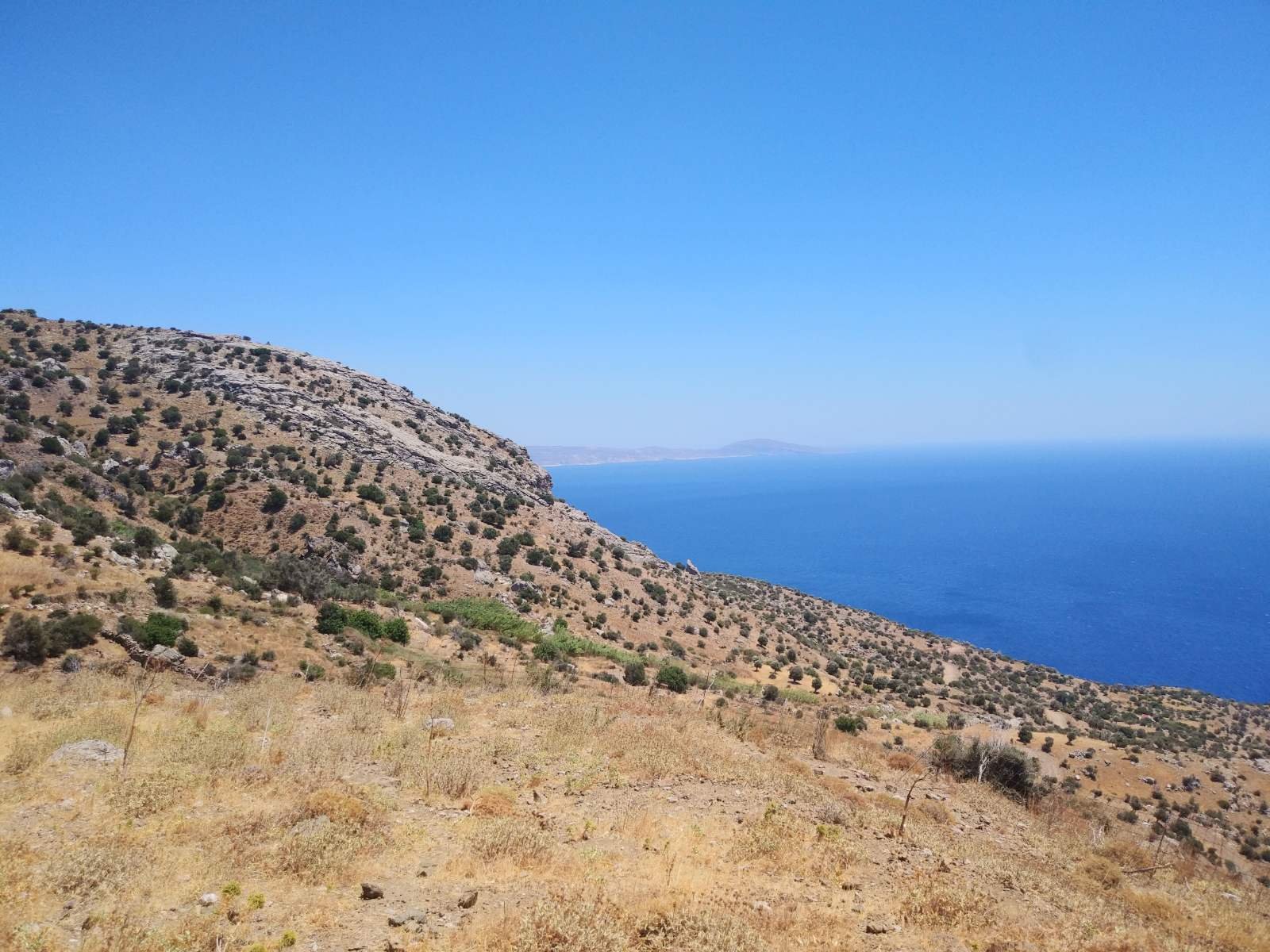 Plot for sale between the villages of Sahtouria – Agios Pavlos, on the new road and touching the main road. It is 8.580 sq.m. and has easy access for electricity connection. It is protected from the wind and has amazing views as it overlooks the islands of Paximadia and Prasonisi.
