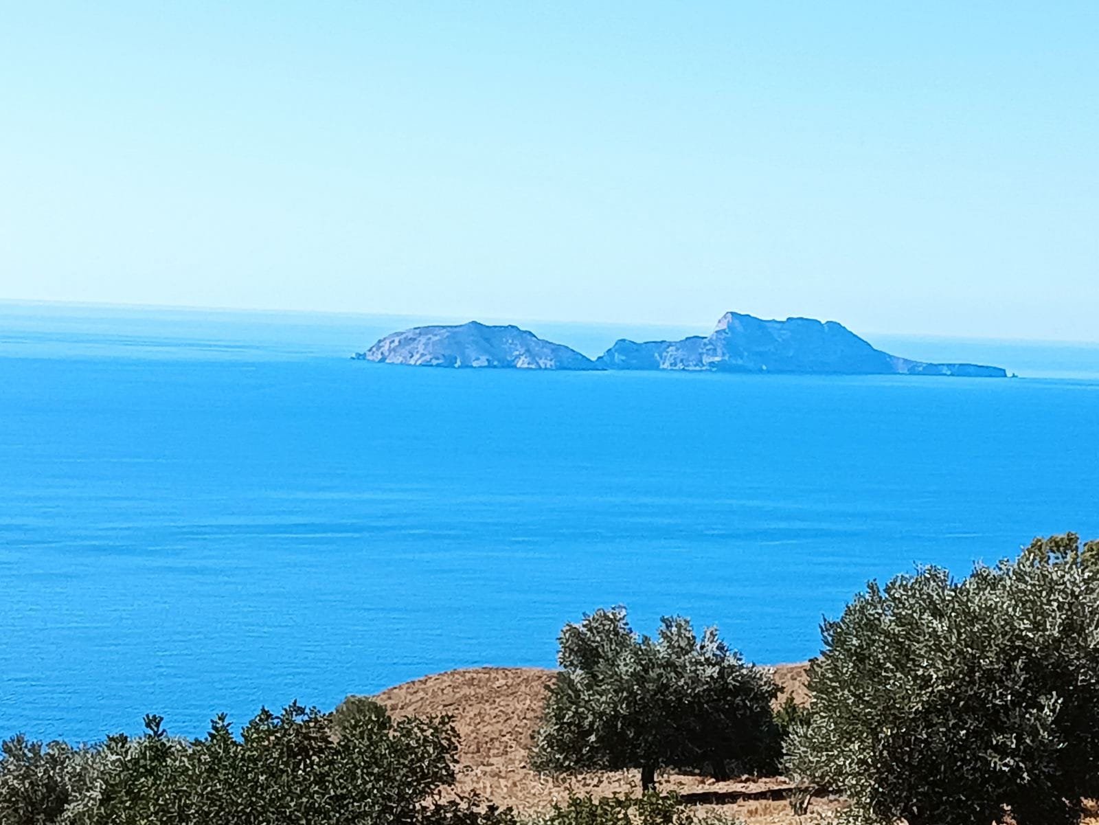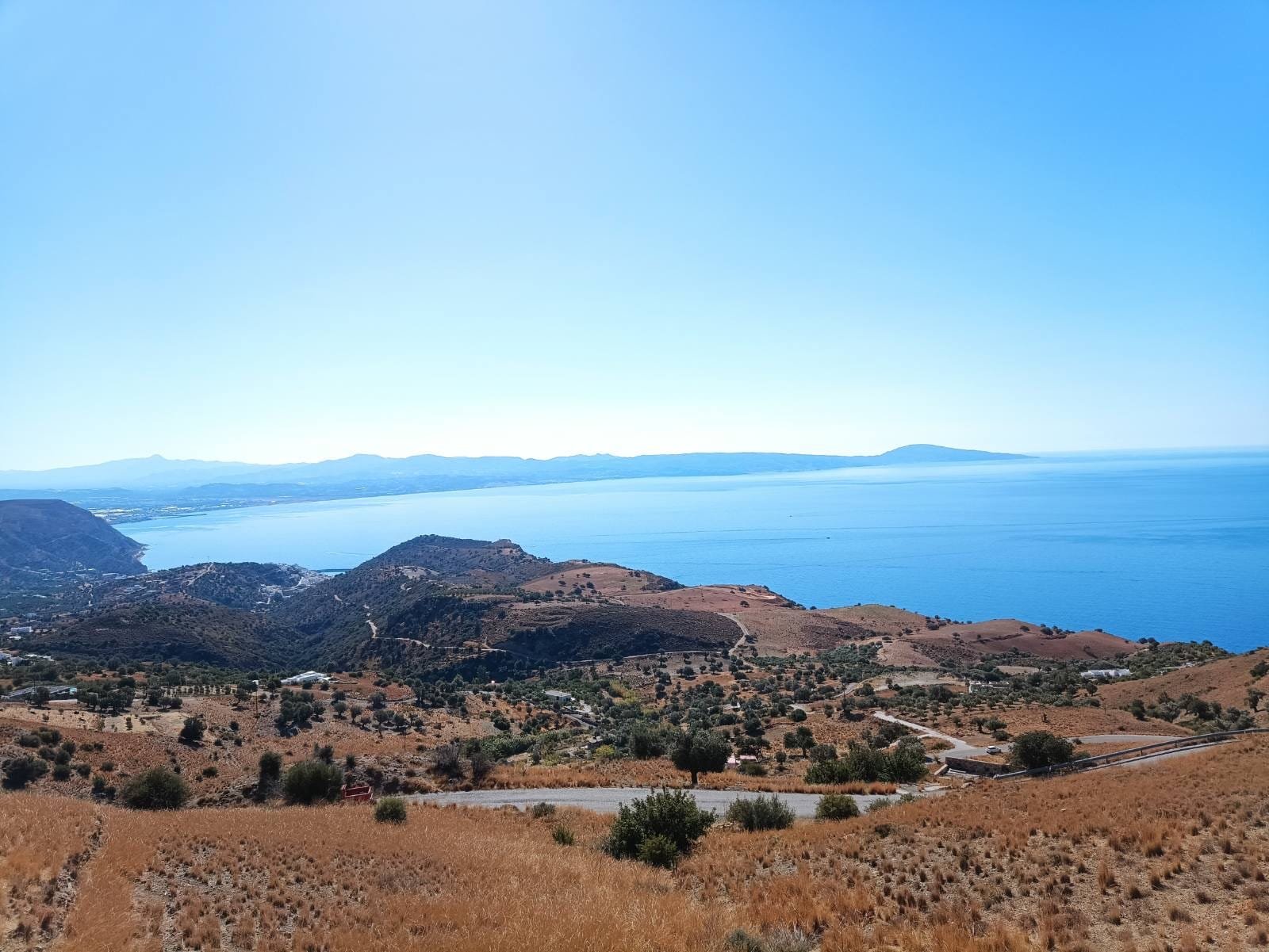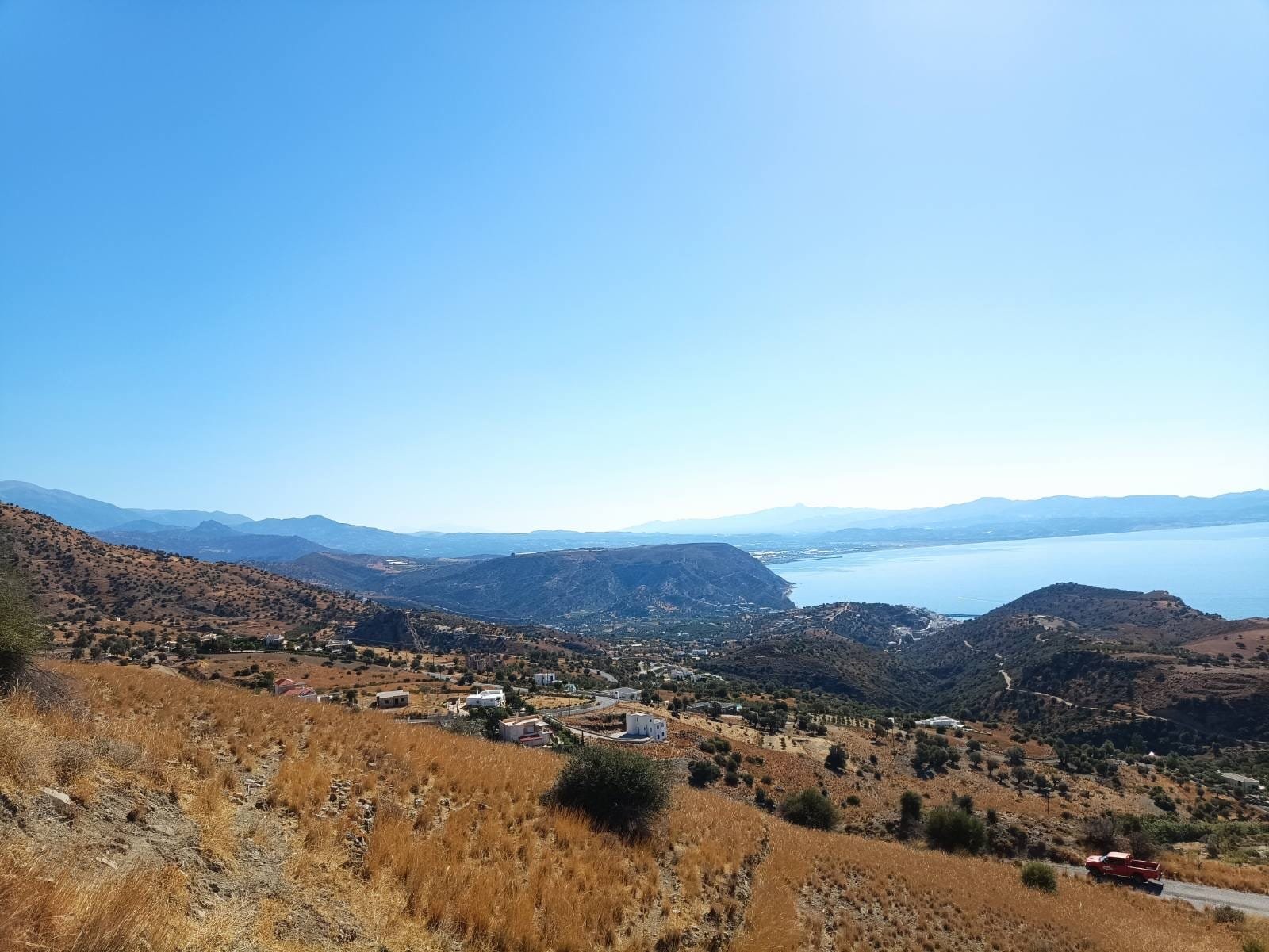 A 4,161.83 square meter plot, which is buildable, is available for sale. It is located next to the provincial road and has water and electricity connections around 200 meters away. The plot offers panoramic views of the sea and the surrounding mountain peaks.