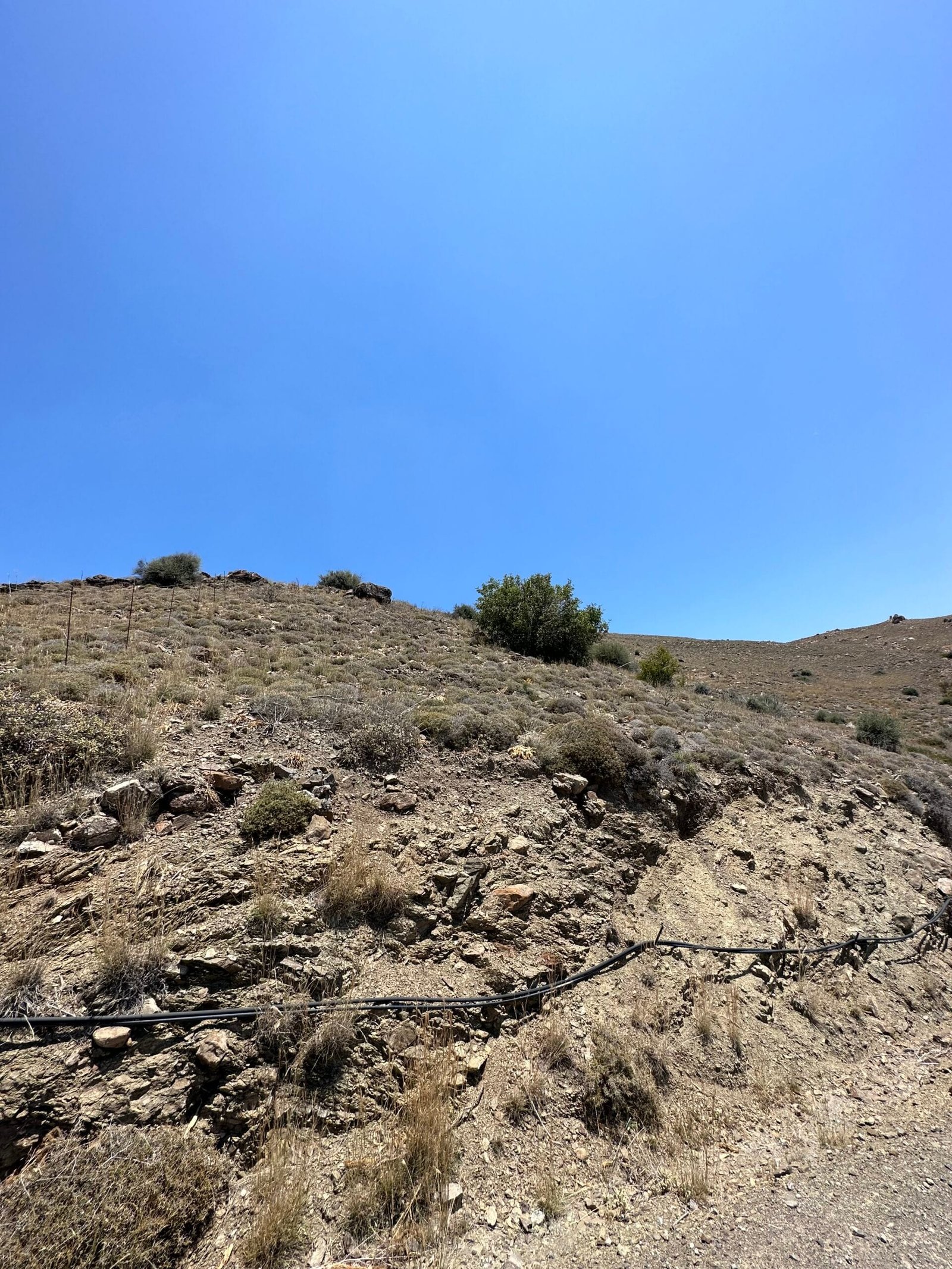 The property is adjacent to a country road, with a paved road just two minutes away. It faces south and is just a five-minute drive from Agios Pavlos.