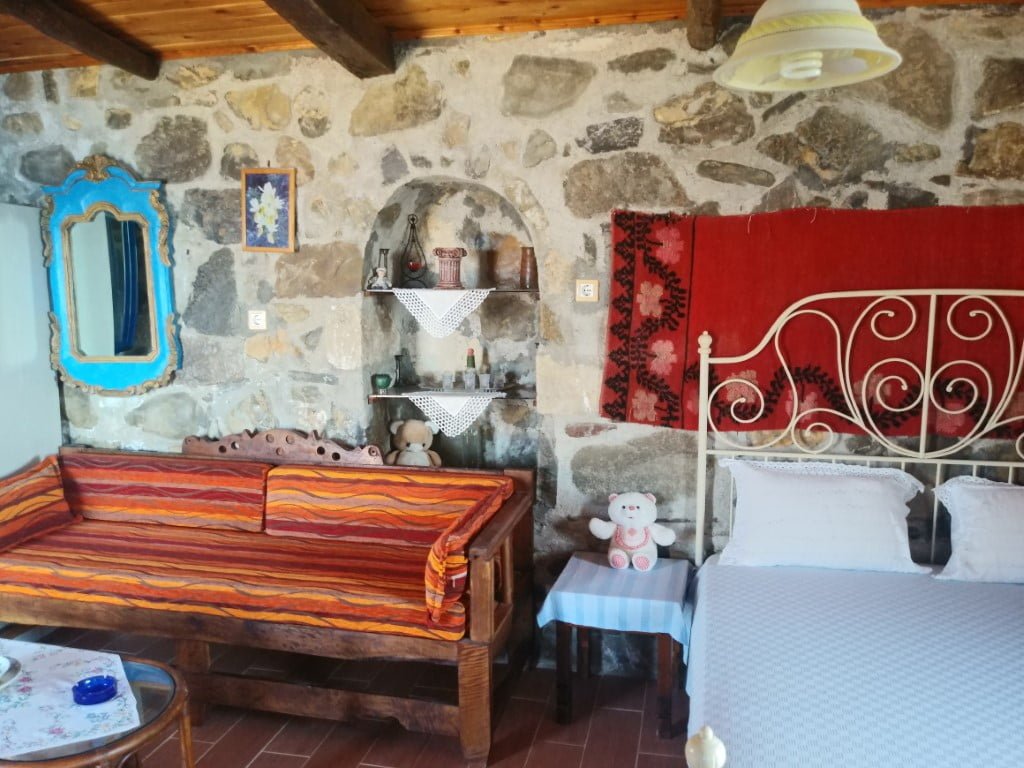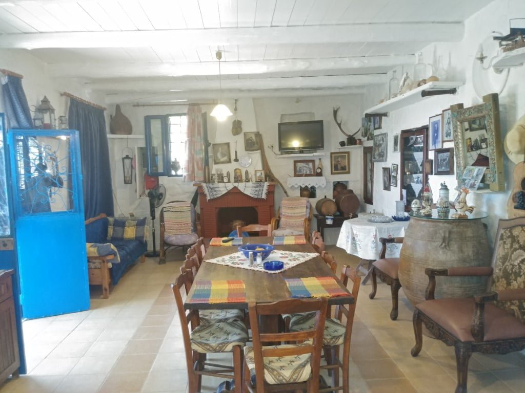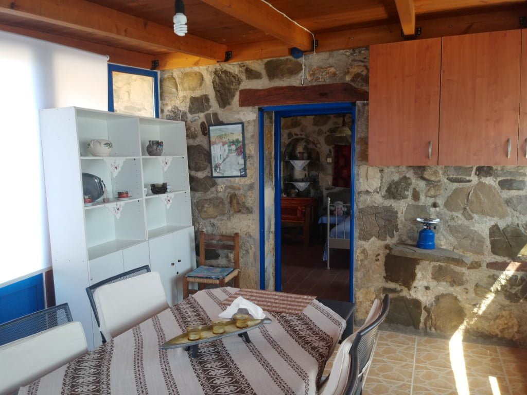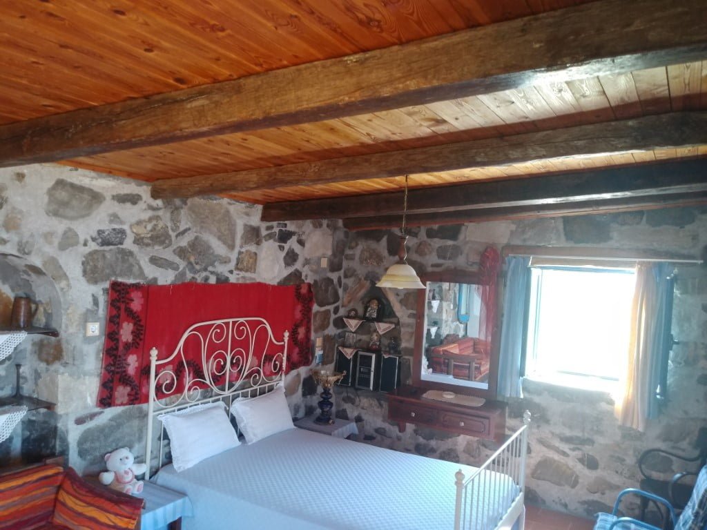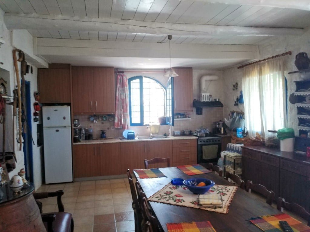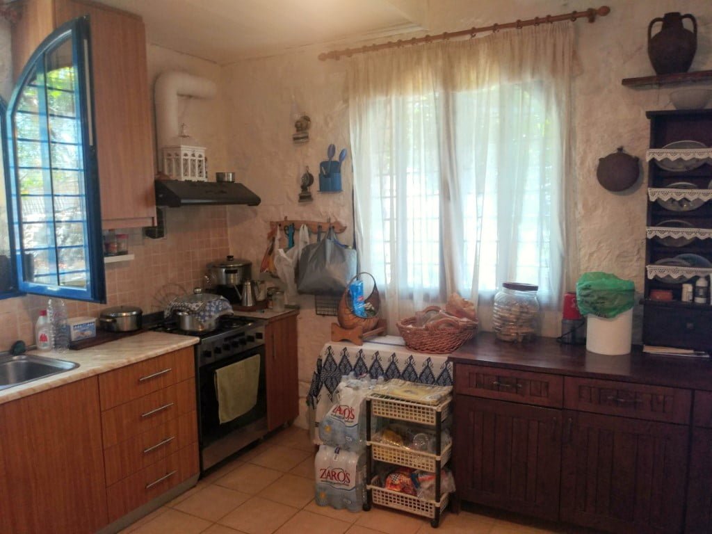 Plot of 10.315 sqm, in the area of Agios Georgios, with a two-storey stone house of total surface of 169,96 sqm. The building is divided into two apartments, the ground floor is 83.43 sqm, while the first floor is 86,53 sqm and includes a bedroom with living room, kitchen and bathroom which are fully furnished. They also have large windows that make it quite bright but also allow you to enjoy the view even when the weather is not favorable and warm.