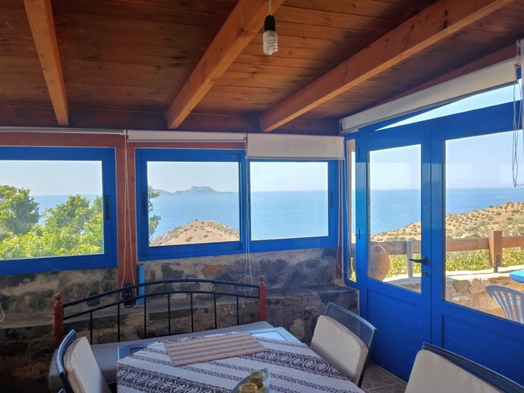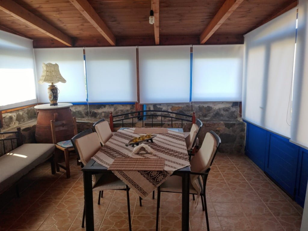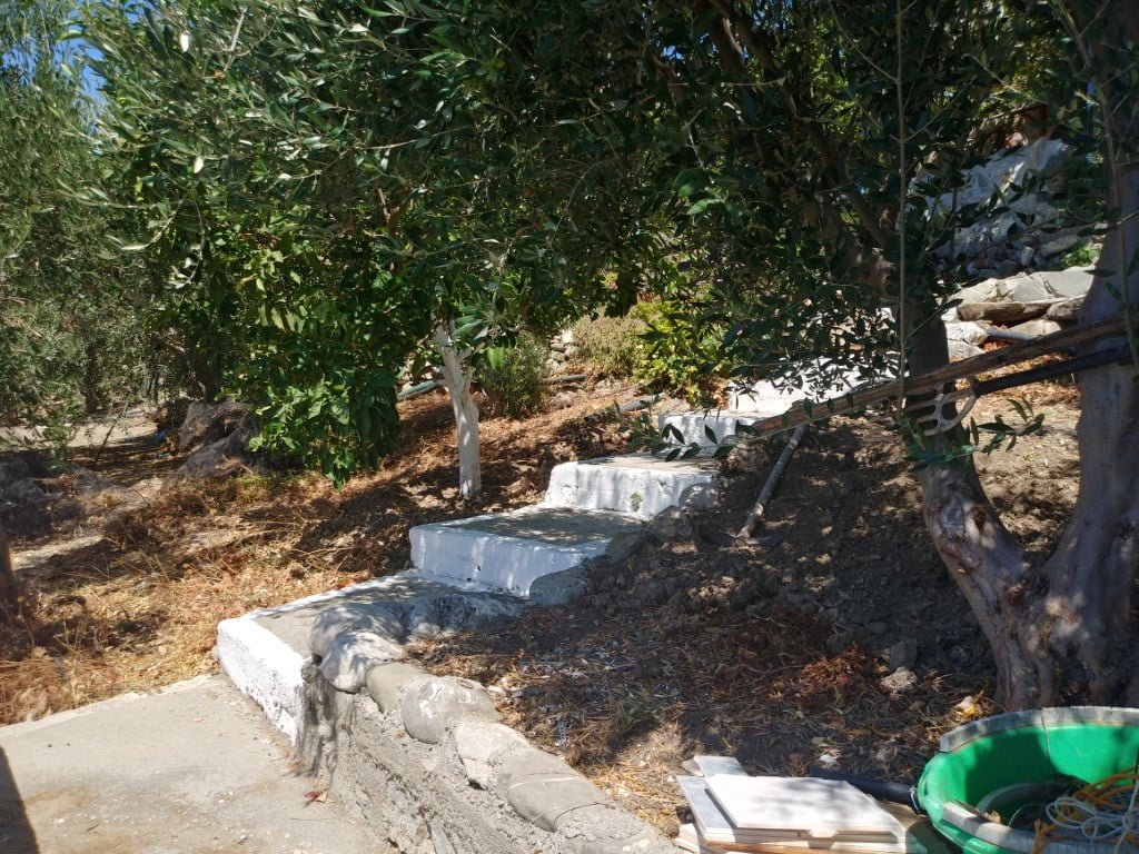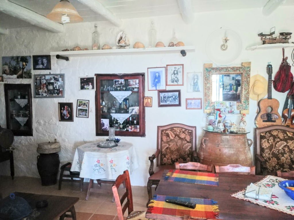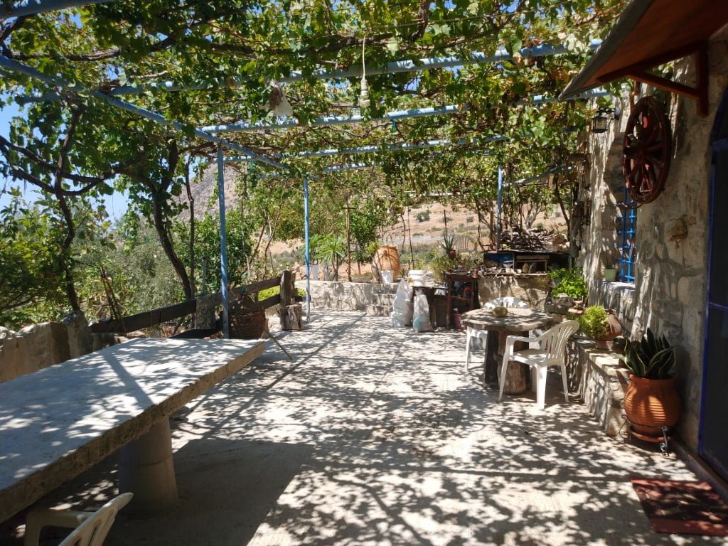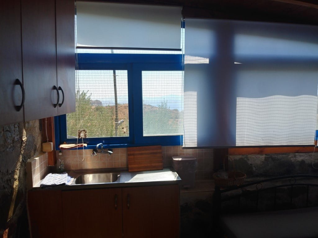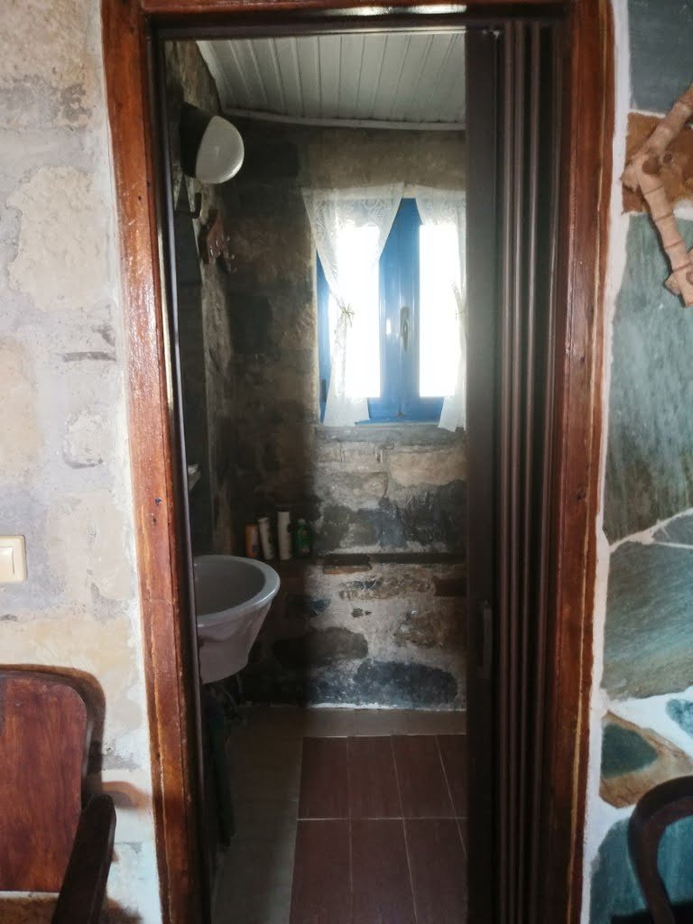 Plot of 10.315 sqm, in the area of Agios Georgios, with a two-storey stone house of total surface of 169,96 sqm. The building is divided into two apartments, the ground floor is 83.43 sqm, while the first floor is 86,53 sqm and includes a bedroom with living room, kitchen and bathroom which are fully furnished. They also have large windows that make it quite bright but also allow you to enjoy the view even when the weather is not favorable and warm.