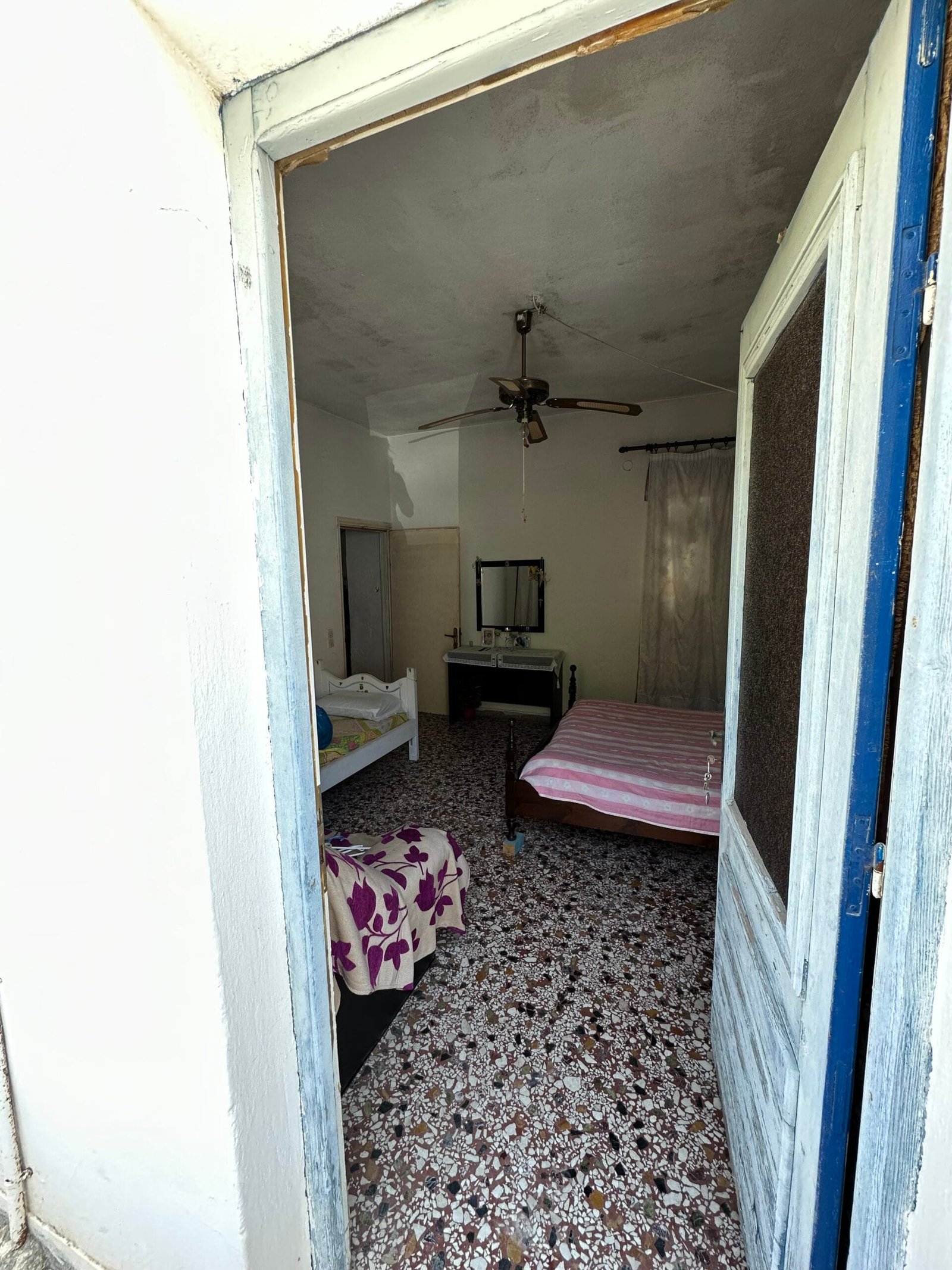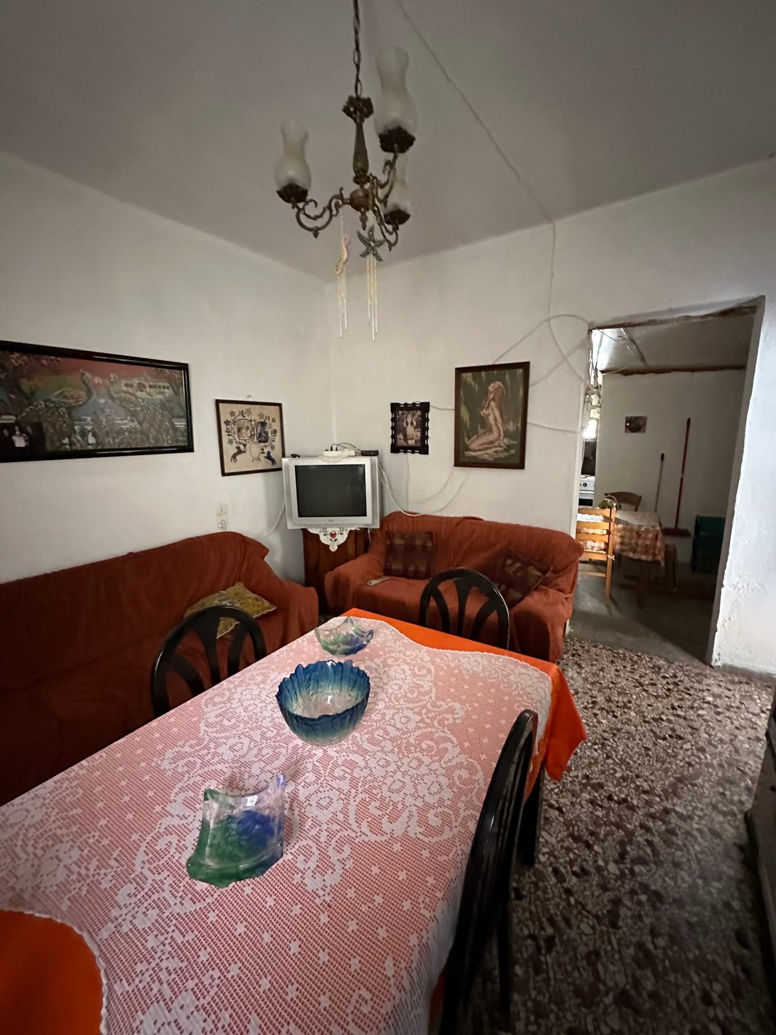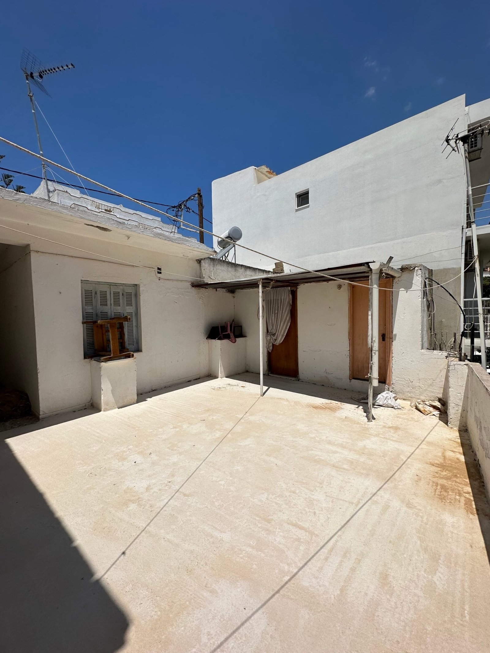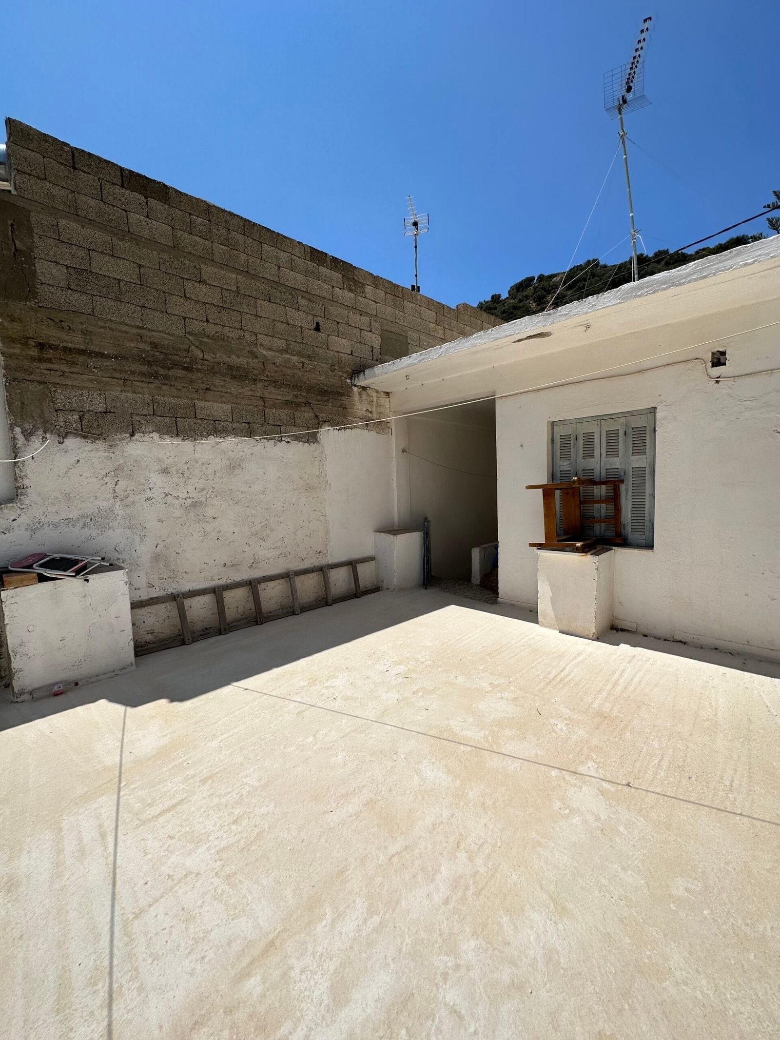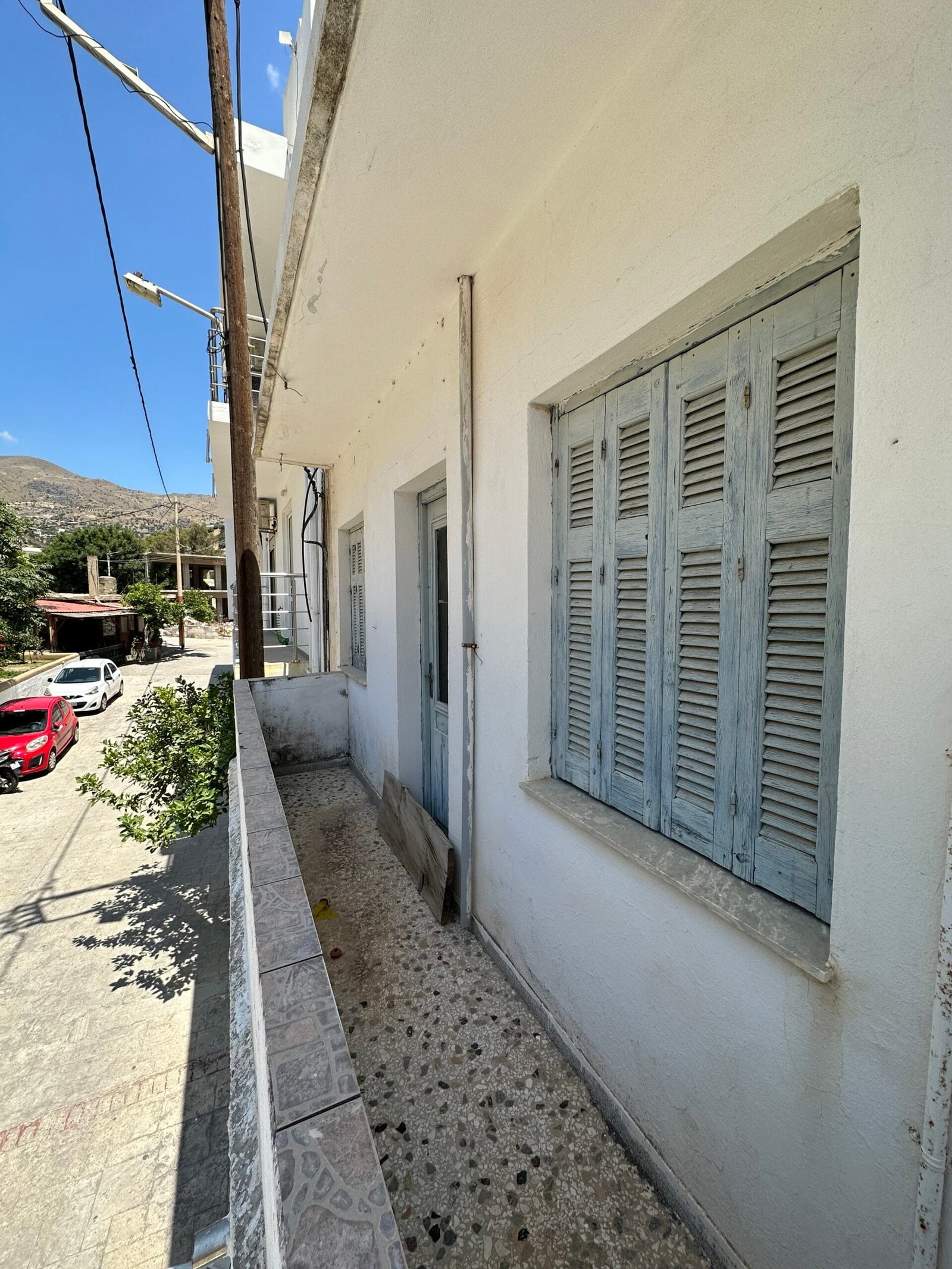 A 100 square meter traditional house, including the exterior, is for sale. It is located on the first floor and has two balconies at the front and back. The house is situated in the peaceful streets of Agia Galini and comprises a living room, a bedroom, and a kitchen. The bathroom is located outside on the spacious back balcony, which can also be used as a patio. The house requires a complete renovation, including the