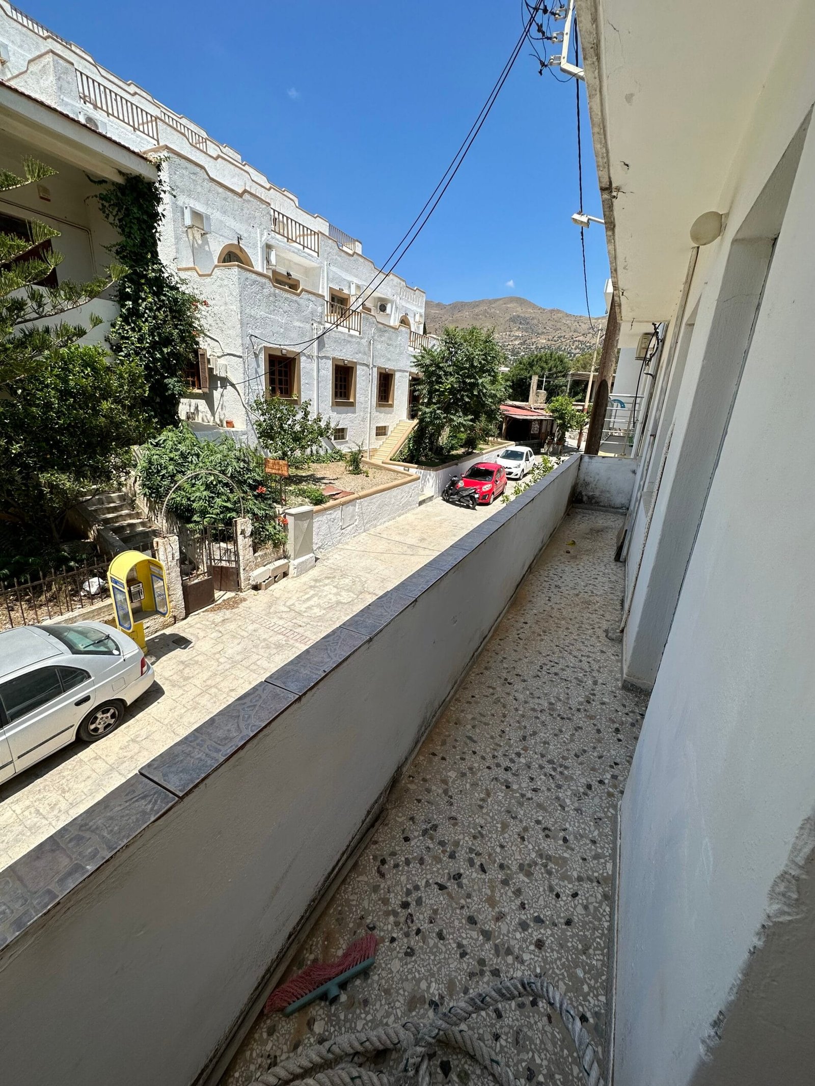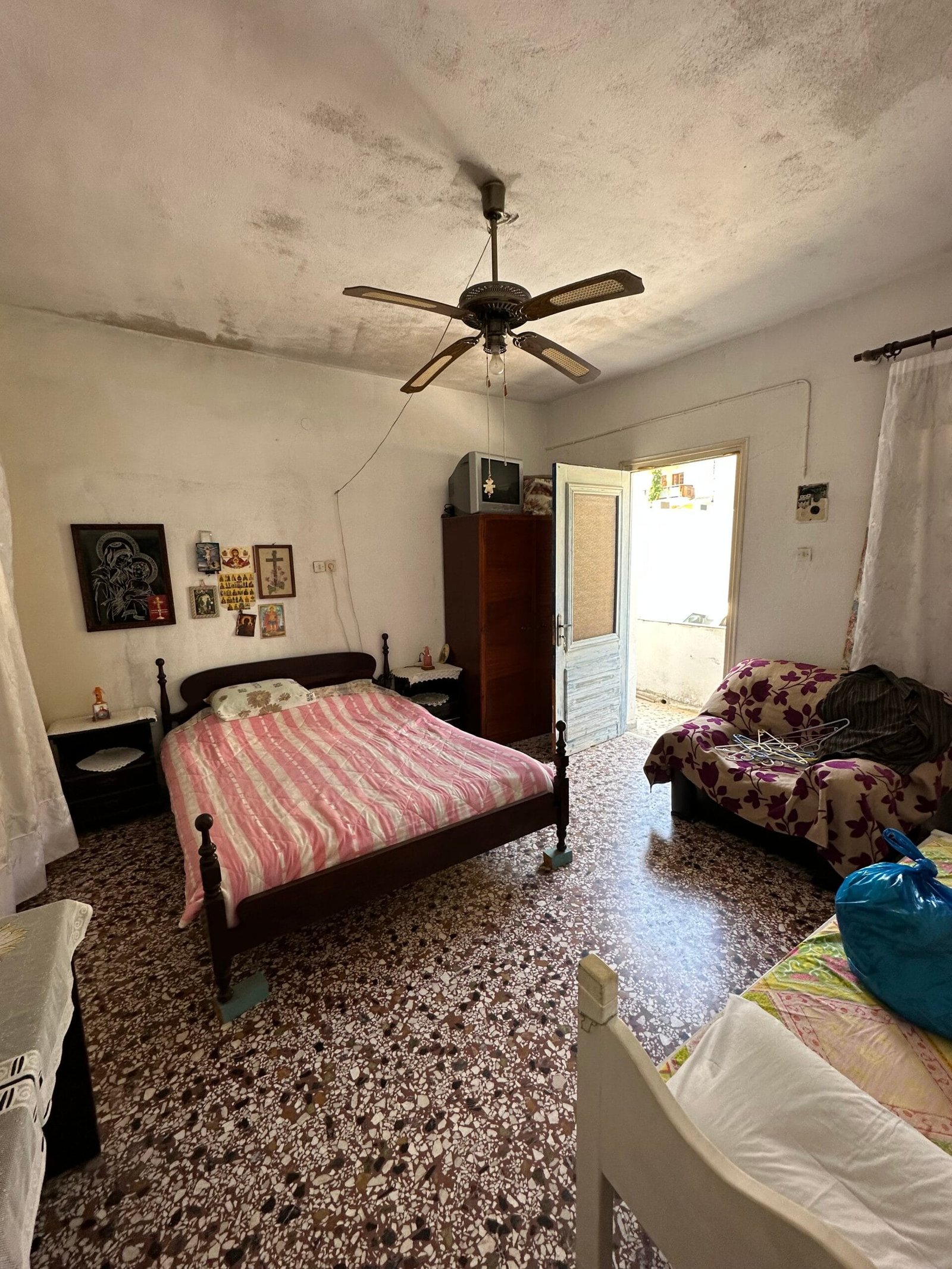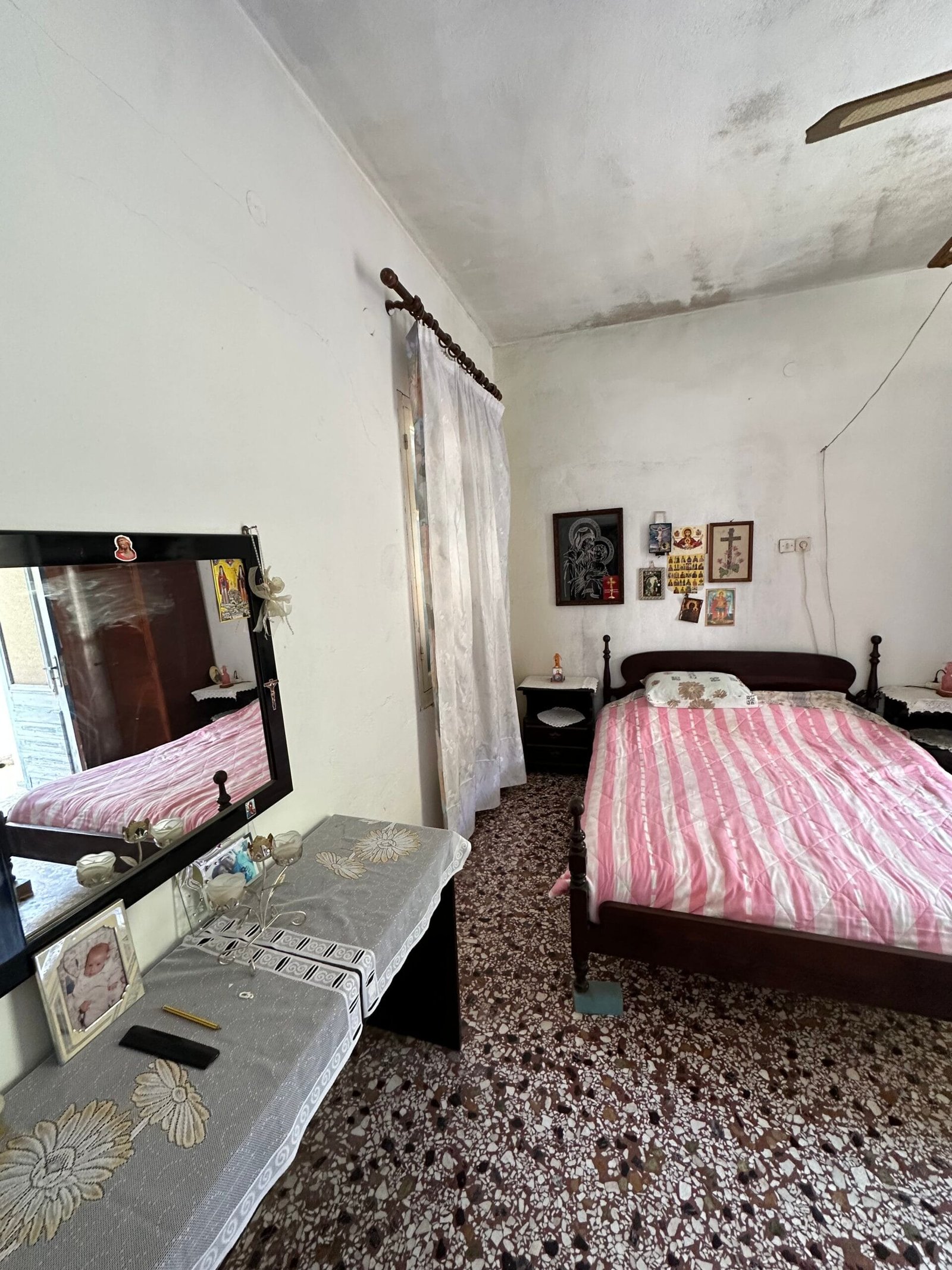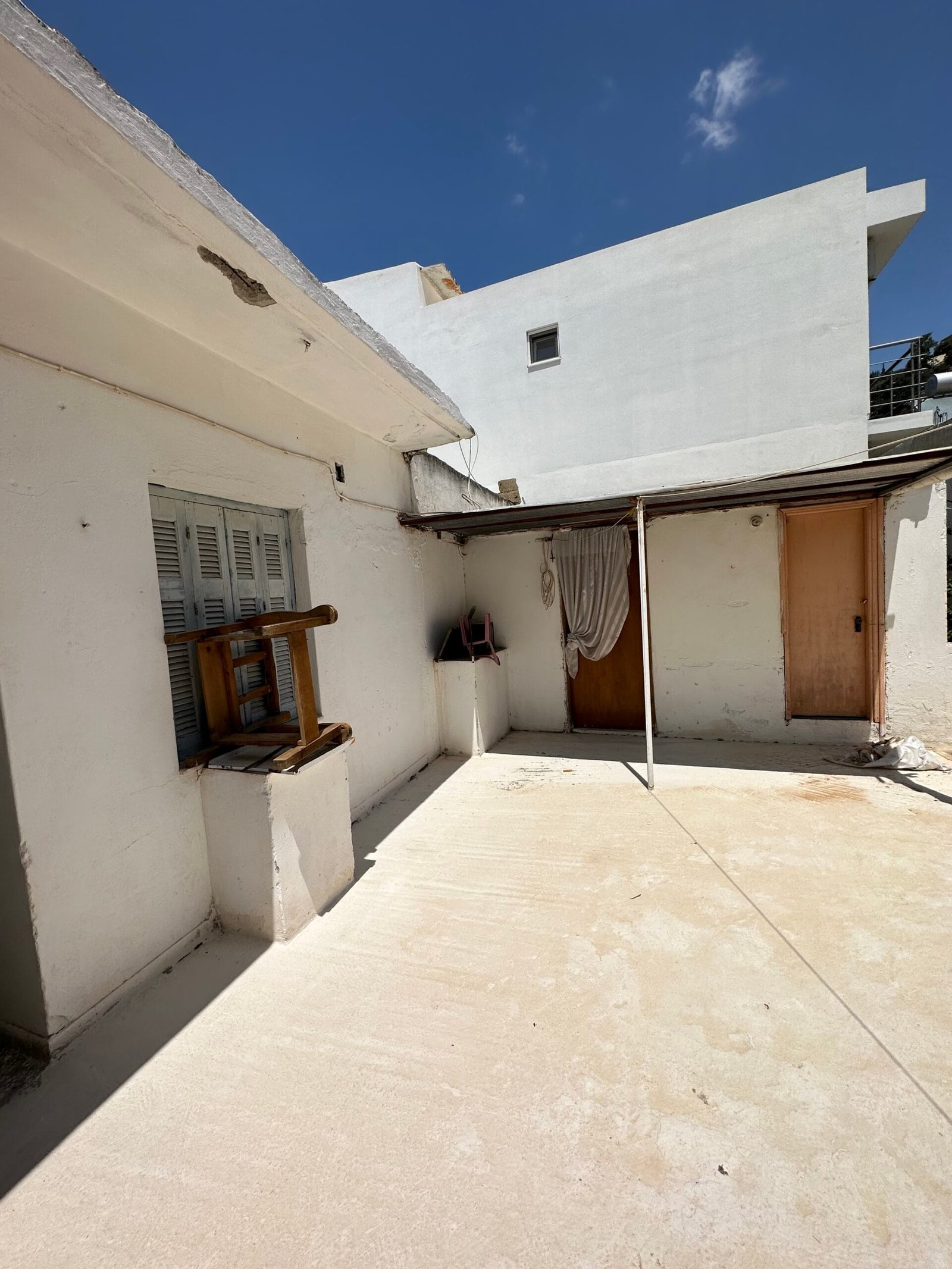 A 100 square meter traditional house, including the exterior, is for sale. It is located on the first floor and has two balconies at the front and back. The house is situated in the peaceful streets of Agia Galini and comprises a living room, a bedroom, and a kitchen. The bathroom is located outside on the spacious back balcony, which can also be used as a patio. The house requires a complete renovation, including the