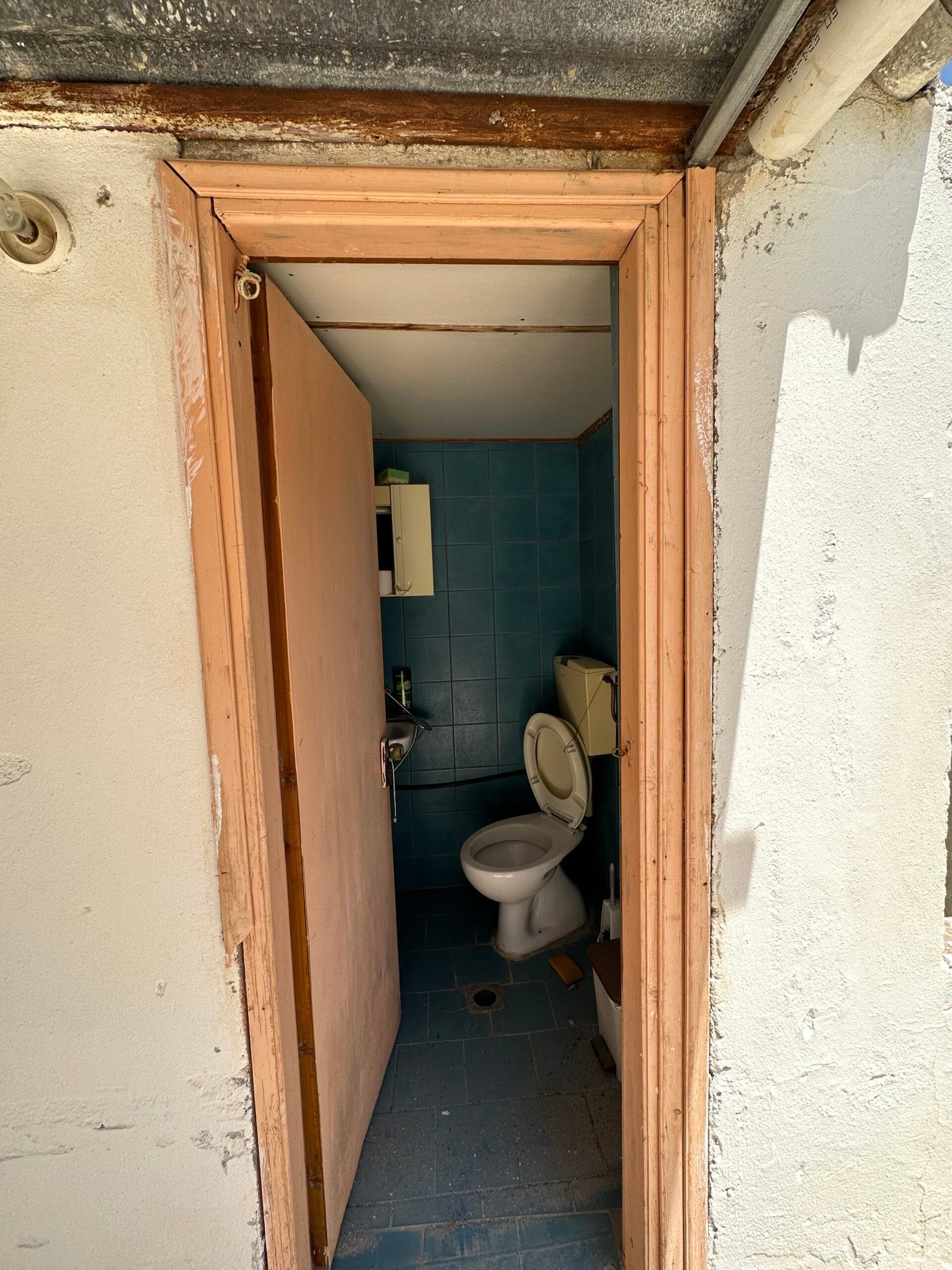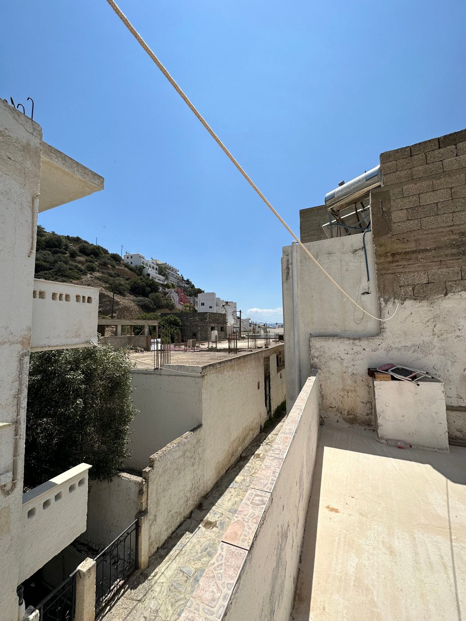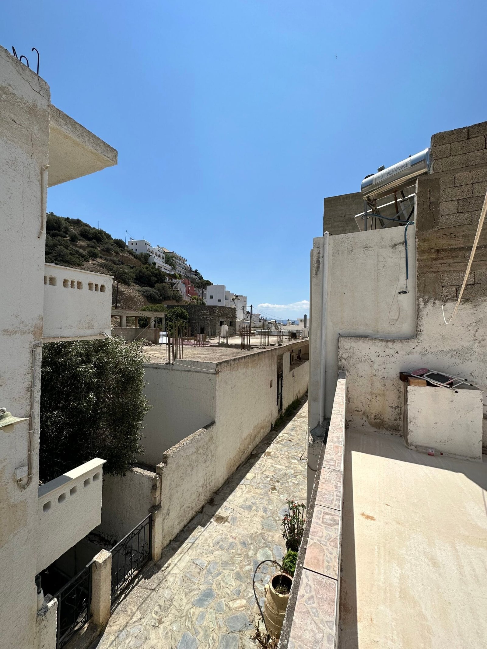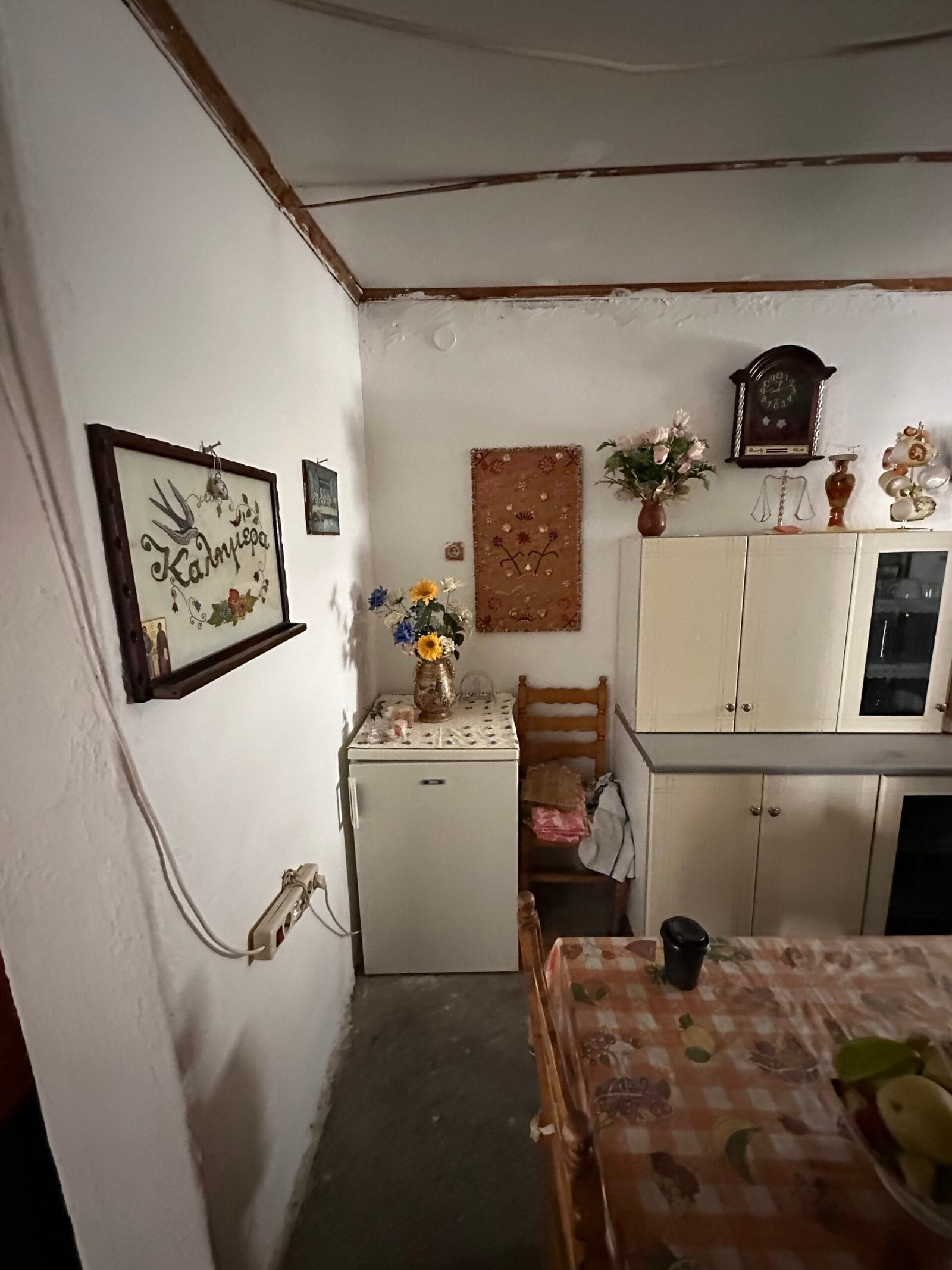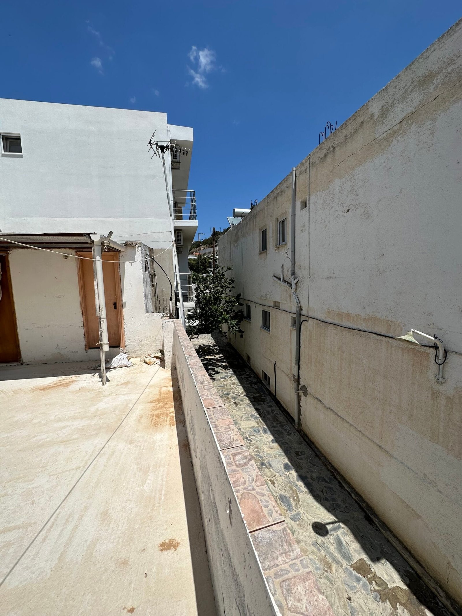 A 100 square meter traditional house, including the exterior, is for sale. It is located on the first floor and has two balconies at the front and back. The house is situated in the peaceful streets of Agia Galini and comprises a living room, a bedroom, and a kitchen. The bathroom is located outside on the spacious back balcony, which can also be used as a patio. The house requires a complete renovation, including the