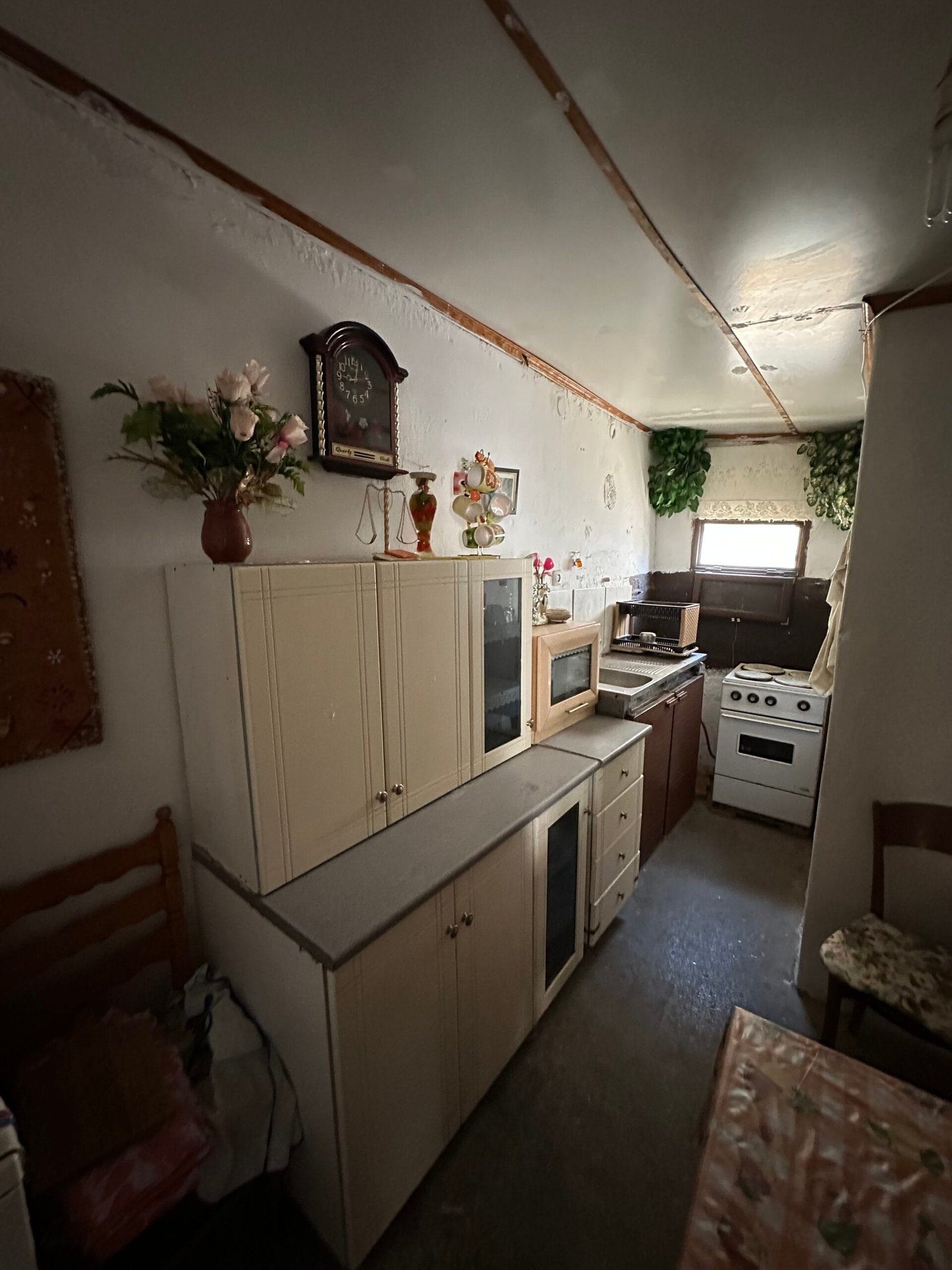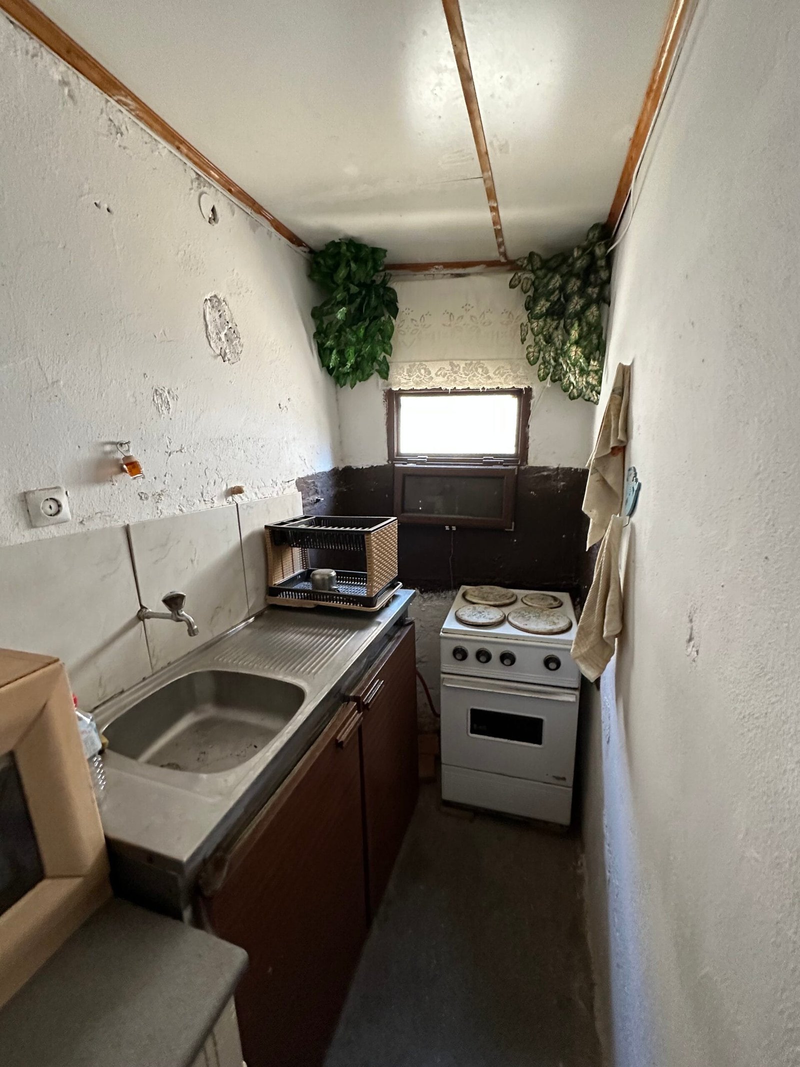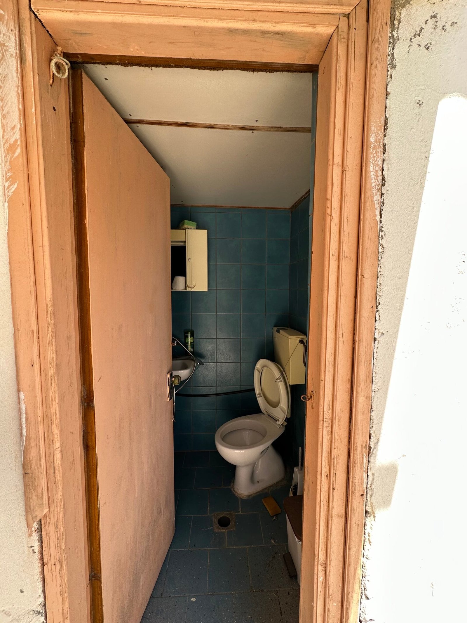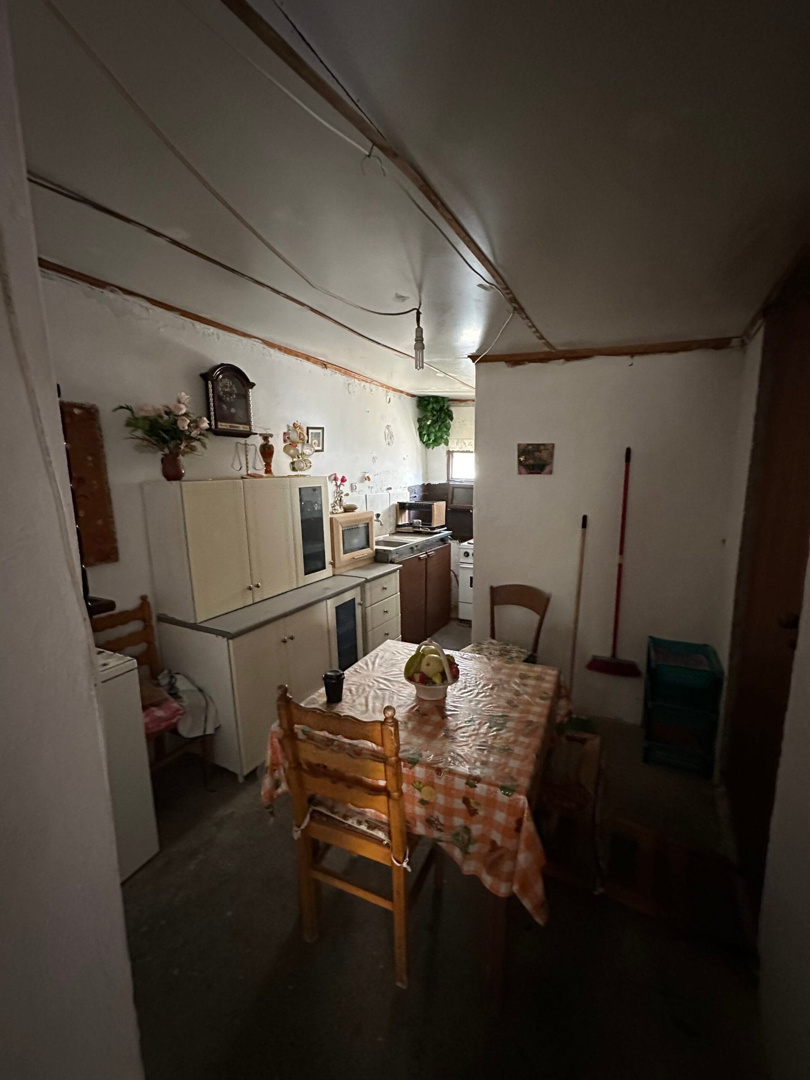 A 100 square meter traditional house, including the exterior, is for sale. It is located on the first floor and has two balconies at the front and back. The house is situated in the peaceful streets of Agia Galini and comprises a living room, a bedroom, and a kitchen. The bathroom is located outside on the spacious back balcony, which can also be used as a patio. The house requires a complete renovation, including the