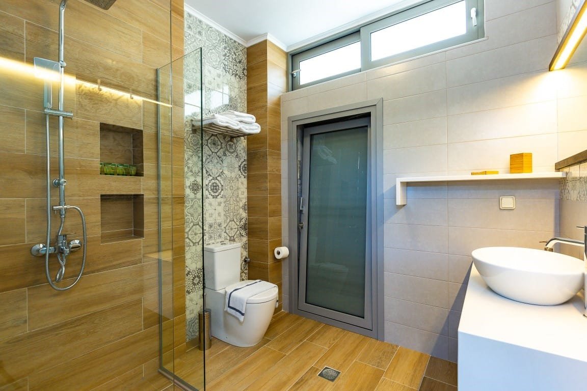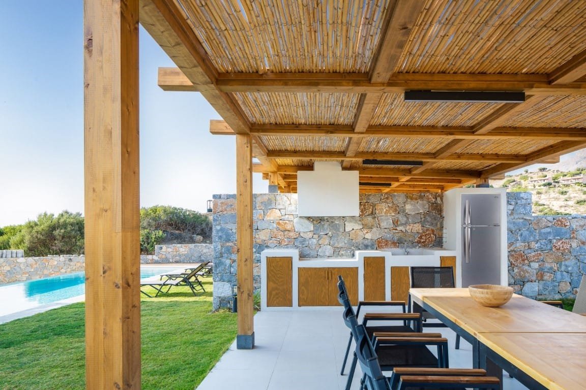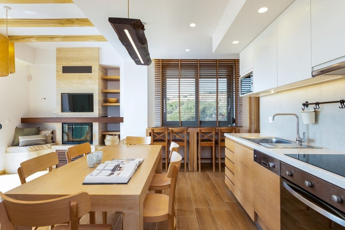 The villa consists of three levels. Entering the main level of the building there is an open plan area consisting of the living room, indoor dining area and a fully equipped kitchen with top quality fittings.