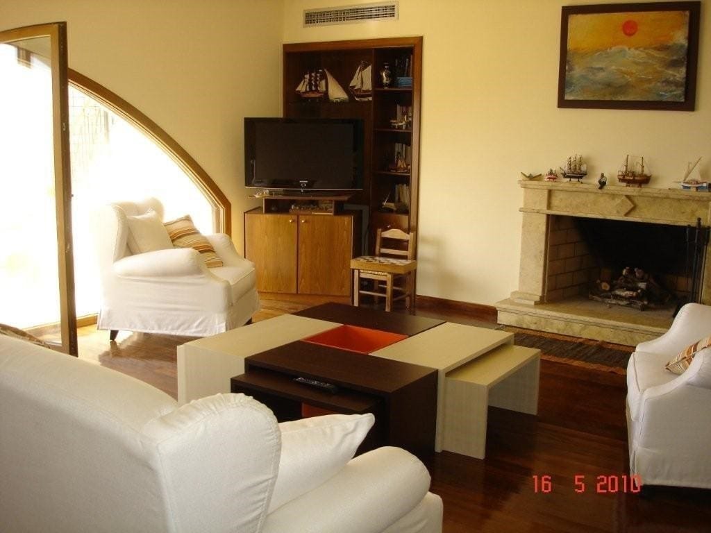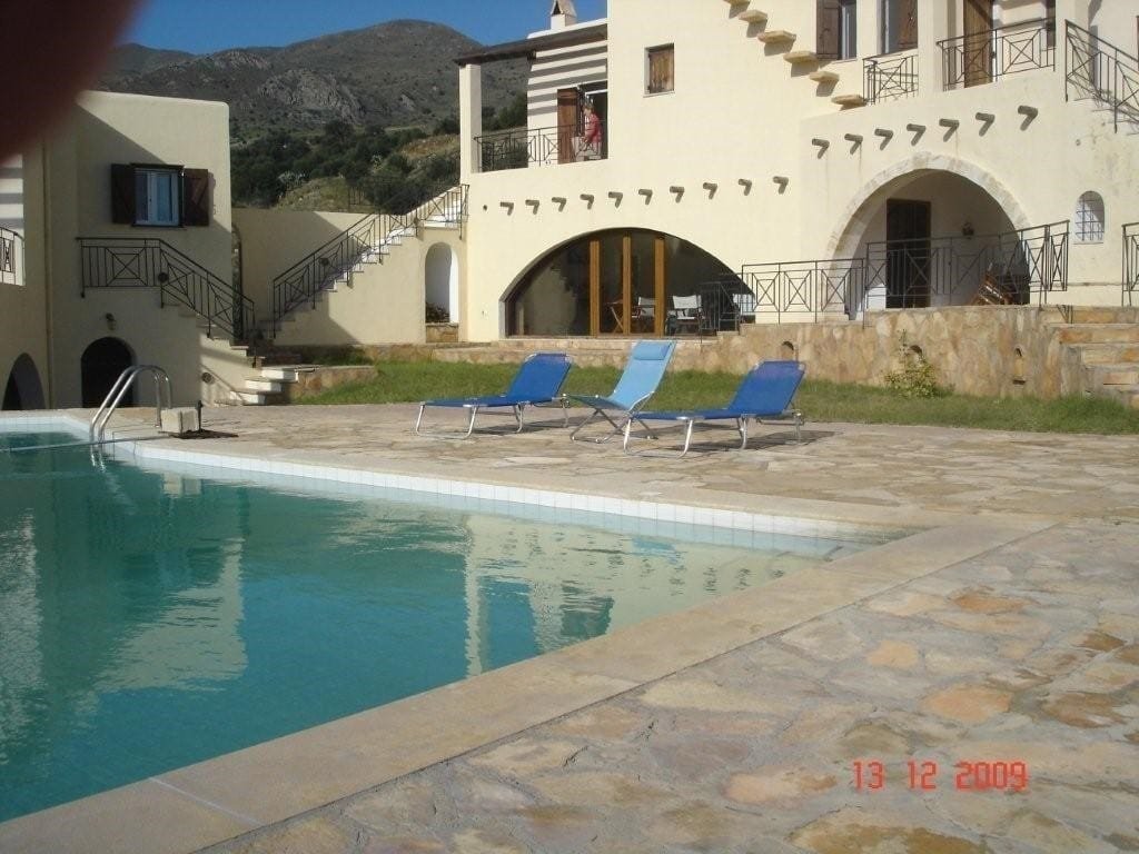 The house, situated on the hill Plativola over the beach of Agia Galini Village in South Crete, stands in the middle of 8.300 m2 property which also includes 170 small olive trees and 67 vines.A marvelous view to the sea extends from the house and the whole property. We can see the islands of Paximadia, the villages of Agia Galini and Matala and the surrounding hills of very old olive trees.The architectural design of the